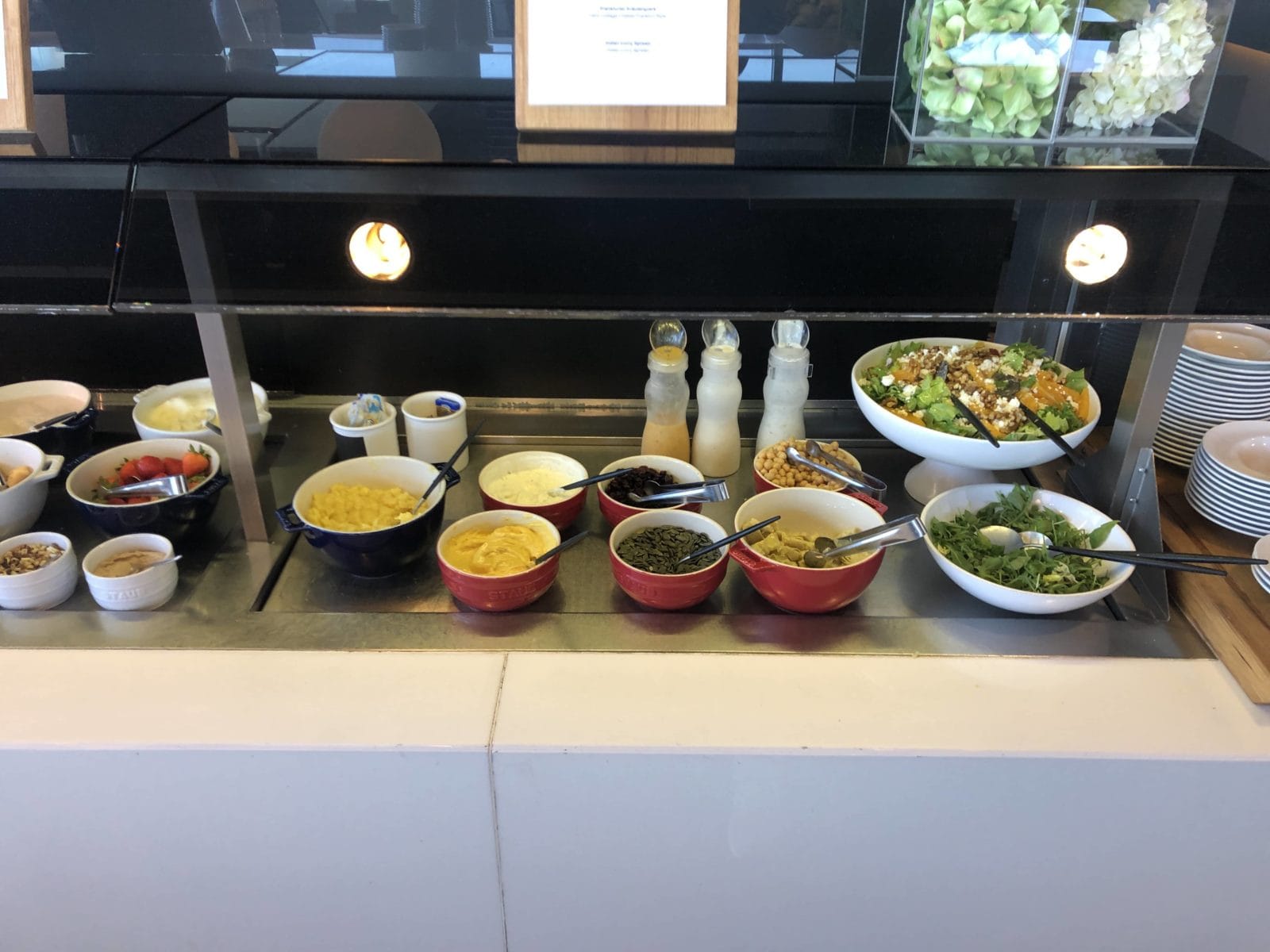 Ich war an einem Sonntag zwischen 17:30 und 18:30 Uhr in der Lufthansa Business Lounge Frankfurt A26. Zu diesem Zeitpunkt wurde natürlich schon Abendessen im Buffetbereich angeboten. Die Lounge war wirklich angenehm leer und somit war auch noch reichlich Pasta, Chili con Carne und Salat vorhanden. Einen Unterschied in der Auswahl der warmen Speisen zur Senator Lounge konnte ich nicht feststellen. Eventuell ist die Auswahl an Beilagen in der Senator Lounge etwas umfangreicher. Gut gefallen hat mir die offene Bar in der Business Lounge. Eine Karte welche Drinks angeboten werden konnte ich nicht ausmachen, aber ich vermute das man auch die Möglichkeit hat den einen oder anderen Cocktail zu bestellen. Die Auswahl an hochprozentigem Alkohol gibt dies jedenfalls her.