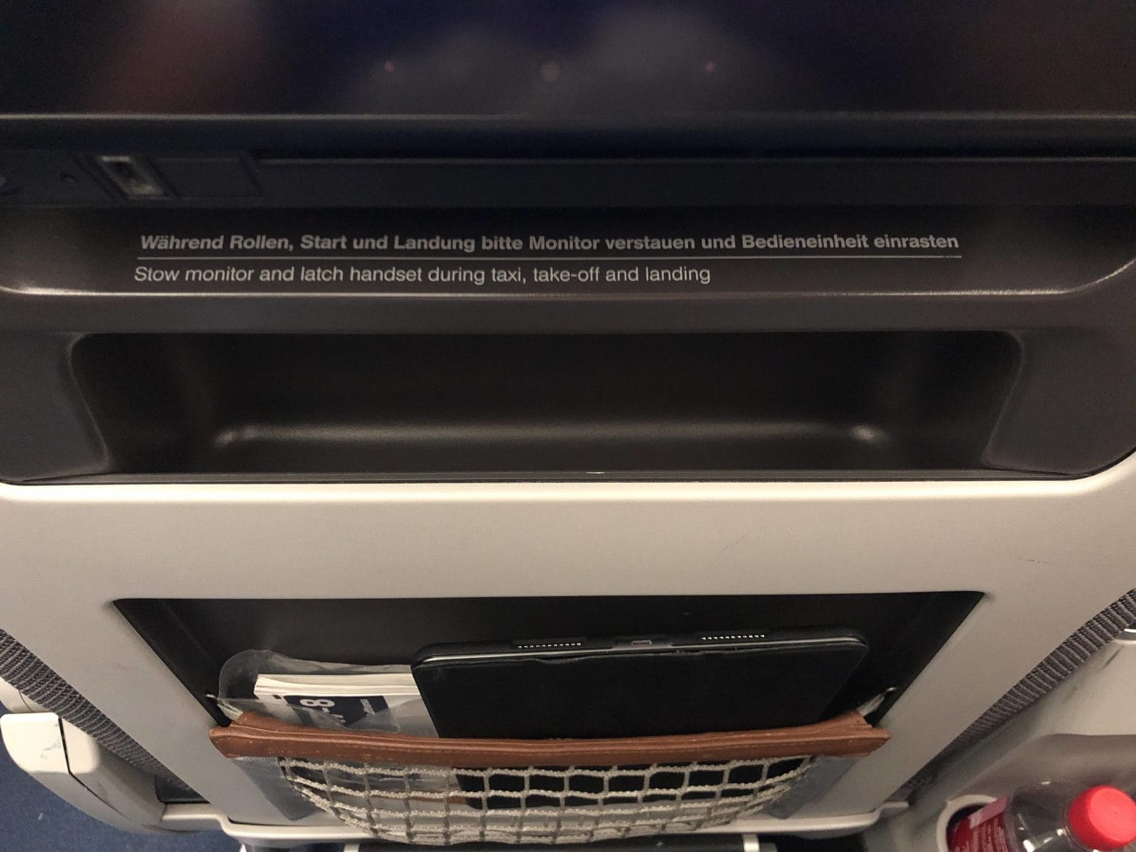 Unter dem Monitor befindet sich ein weiteres kleines Ablagefach, wo ihr euer Smartphone oder andere Dinge in dieser Größe verstauen können. Das Verstaufach, in dem sich die Zeitschriften befinden ist relativ großzügig und man kann dort zum Beispiel iPad, oder Notebook verstauen. Zwischen den Sitzen unten an der Armlehne befindet sich die Steckdose. Der USB Anschluss ist dagegen direkt neben dem Monitor angebracht. So könnt ihr das Smartphone laden und in das kleine Ablagefach legen.