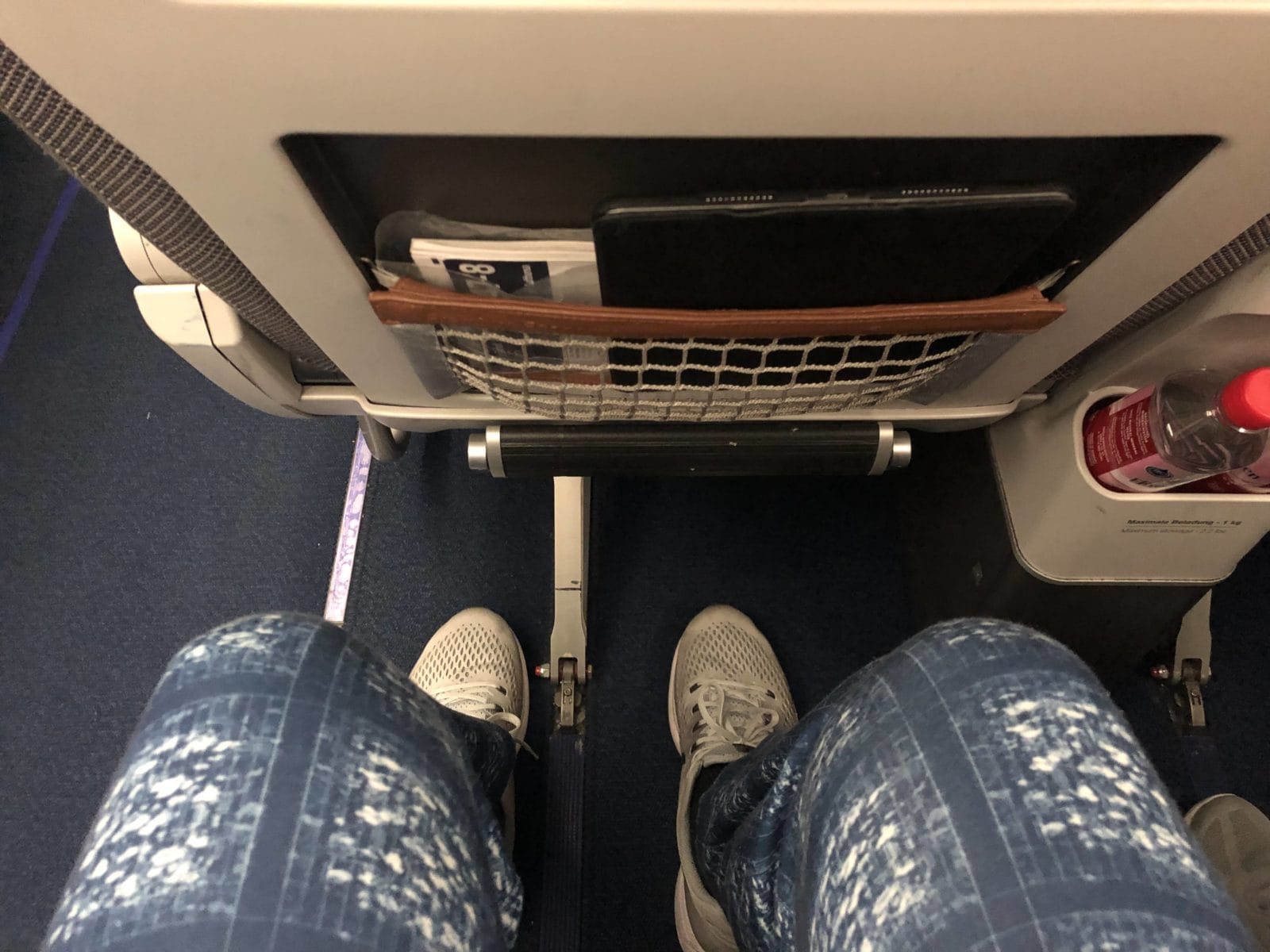 Der Sitz in der Premium Economy bietet natürlich gewisse Vorteile gegenüber einem Lufthansa Economy Class Sitz, kommt aber noch lange nicht an einen Business Class Sitz heran. Allein die Breite des Sitzes sorgt aber schon für einen deutlich angenehmeren Flug. So muss man sich auf einem 12-Stunden Flug nicht die Armlehnen mit einer fremden Person teilen. Gerade auf den beiden Mittelplätzen, die sich weder am Fenster noch direkt am Gang befinden, kann das ein enormer Vorteil sein. Ein weiterer Vorteil ist natürlich die Beinfreiheit. Durch einen Sitzabstand von ca. 97 cm habt ihr etwa 18 cm mehr Beinfreiheit gegenüber einem Sitz in der Economy Class.
