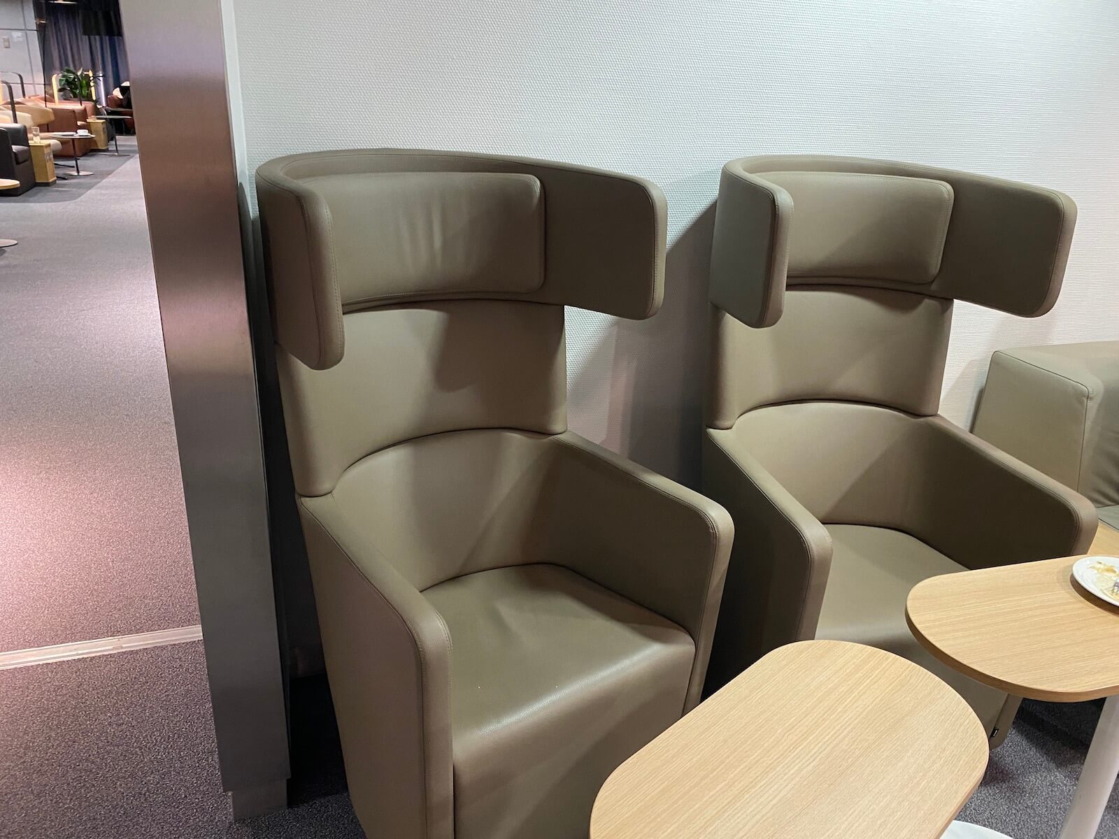 Auf der Website zur Neueröffnung der Lounge steht ebenfalls, dass ein Prototyp eines neuen Arbeitsbereiches getestet wird. Ich bin mir nicht sicher, ob das der Bereich auf der rechten Seite hinter dem Buffett Bereich sein sollte. Dort stehen halbhohe Sessel mit niedrigen Beistelltischen. Zum Arbeiten scheinen diese eher ungeeignet und verursachen einen krummen Rücken.