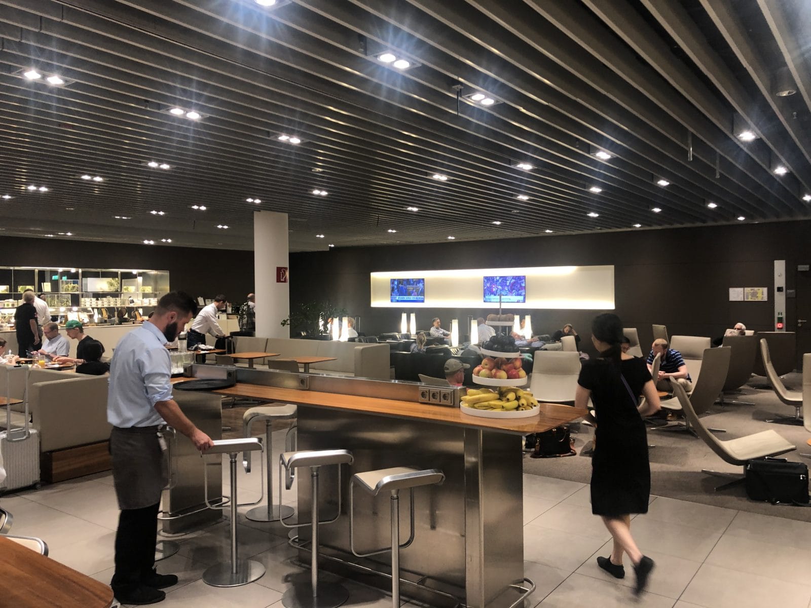 Ich war positiv überrascht wie leer die Lounge im Vergleich zu so manch anderer Lufthansa Lounge war. Leider fällt kein natürliches Licht in die Lounge, da sich diese mitten im Terminal befindet. Die niedrigen Decken lassen die Lounge zusätzlich etwas beengter wirken.