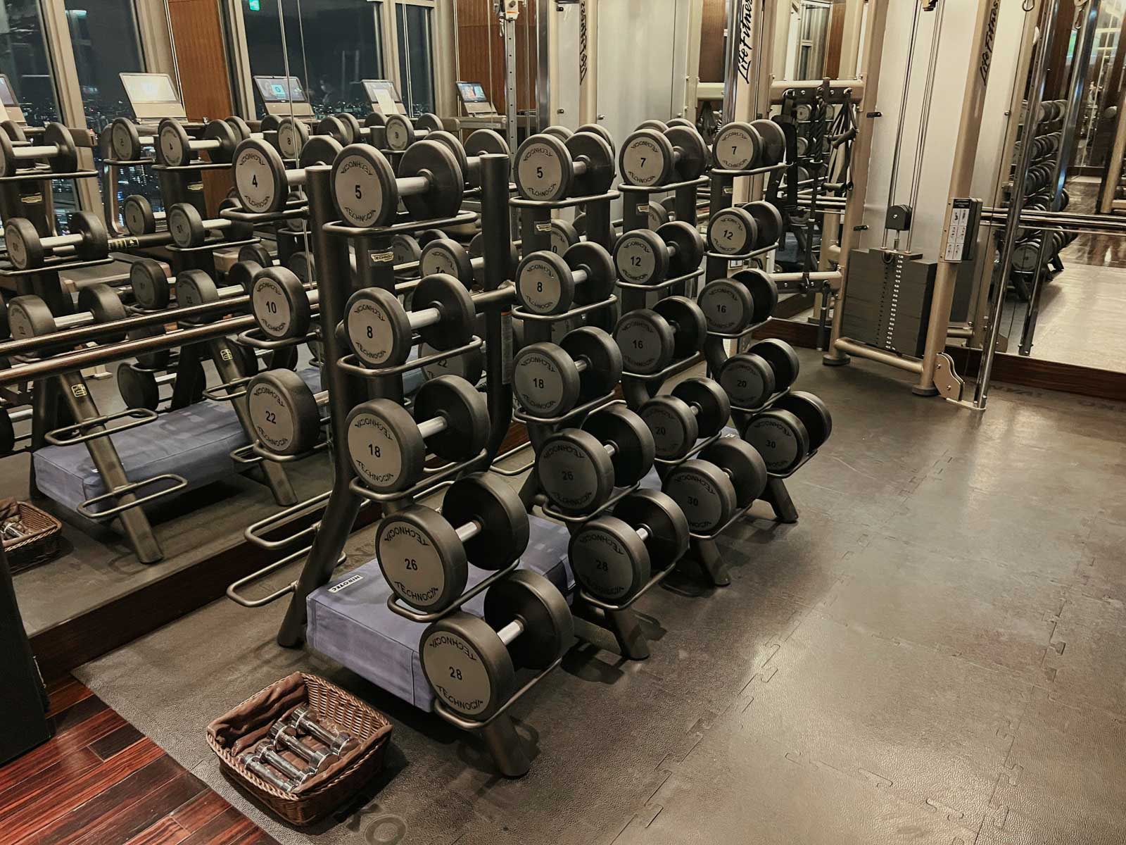 Der Fitnessraum ist zwar nicht all zu groß, da ich aber beide Male alleine war, definitiv ausreichend, und auch was die Ausstattung betrifft ist eigentlich alles Notwendige vorhanden. Besonders beeindruckend war die Aussicht entlang der Kardio-Maschinen über Tokio.