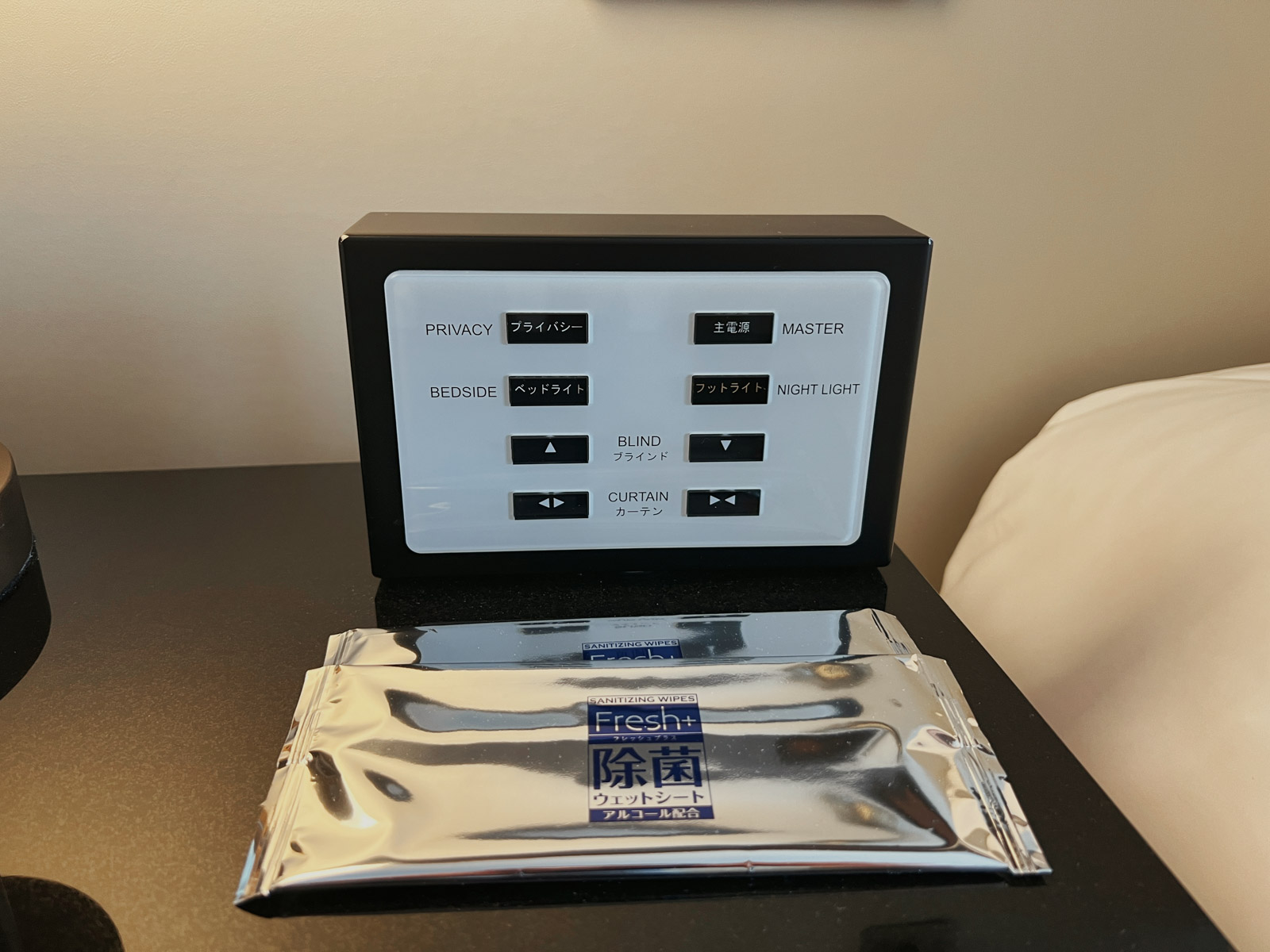 Trotz des schätzungsweise eher hohen Alters der Zimmer sind diese gut ausgestattet was Technik betrifft. Am Eingang gibt es die üblichen Bedienelemente für Licht, Privacy und Housekeeping; am Bett sind Steckdosen sowie ein Masterschalter für Licht und Vorhänge vorhanden. Auf der Holzarmatur neben dem Schreibtisch sind weitere Stromanschlüsse zu finden, man kann also alle seine Geräte gleichzeitig Laden – Adapter sind dabei nicht nötig, alles sind entweder USB- oder Universalsteckdosen.
