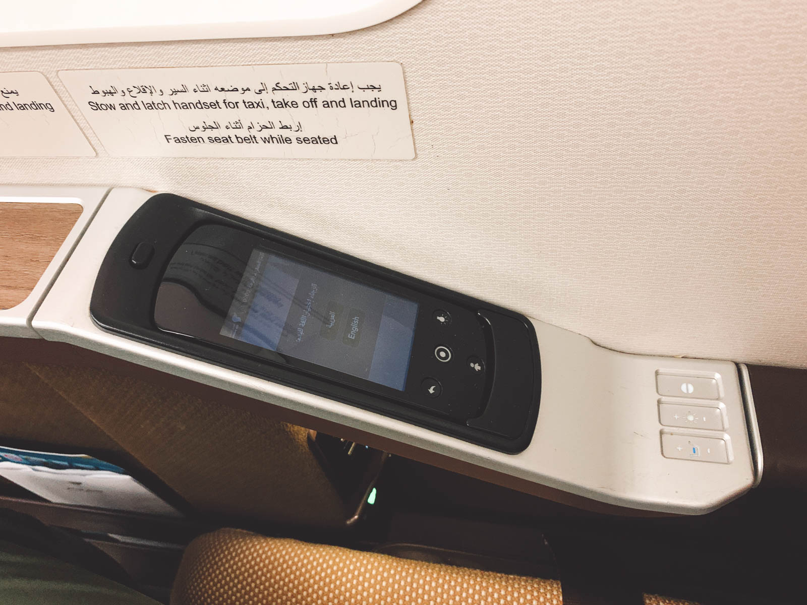 Das Oman Air Entertainment ist ein Punkt, der mich leider absolut nicht überzeugen konnte, und das liegt sowohl an der Hardware als auch an der Software. Zum einen ist da die Auflösung des Bildschirms, welche alles andere als augenfreundlich ist (ich würde vermuten, nicht einmal HD). Und wem das noch nicht genug ist, der darf sich dann an die Bedienung des IFE machen. Diese geht offenbar nur über die Fernbedienung, nicht über den großen Monitor selbst, und ist alles andere als reaktiv, jedenfalls in meinem Fall.