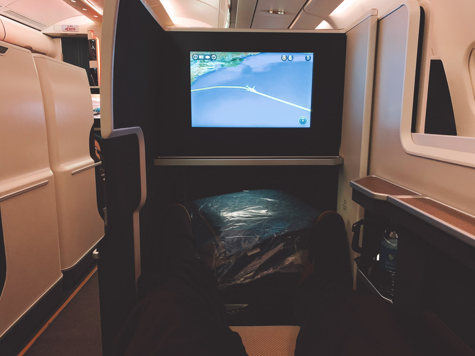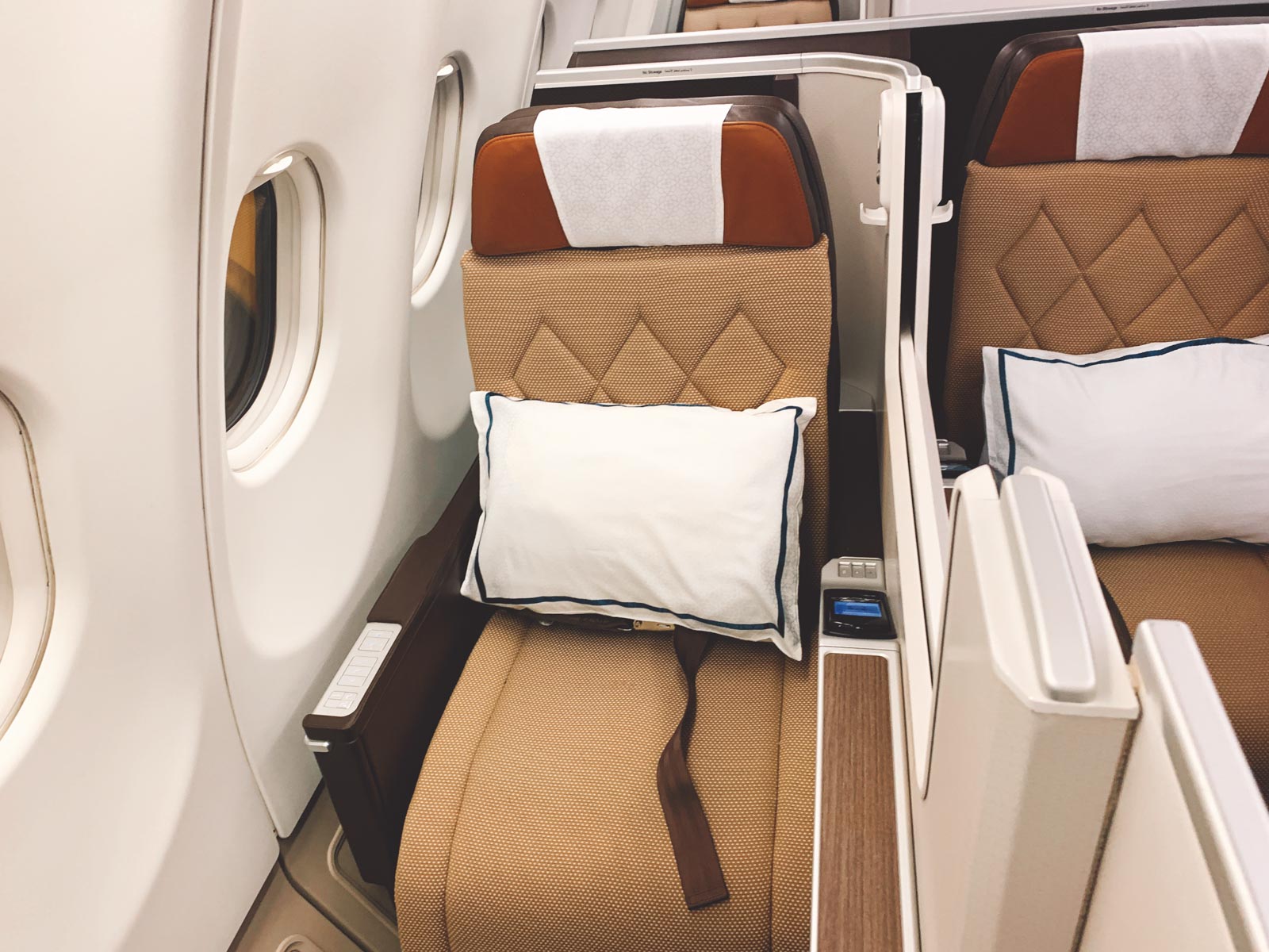 Dieser war zum Gang hin offen, direkt daneben ist Sitzplatz 12K, ein echter Fensterplatz. Dazwischen lässt sich eine Trennwand hochfahren, für den Fall, dass man nicht zusammen reist. Die mit Abstand besten Plätze sind entsprechend alle A bzw. K Sitze, hier hat es maximale Privatsphäre bei gleichzeitig bestem Blick aus den drei Fenstern. Da sämtliche Suiten direkten Zugang zum Gang haben, gibt es hier auch nicht den Nachteil über den Sitznachbarn drübersteigen zu müssen.