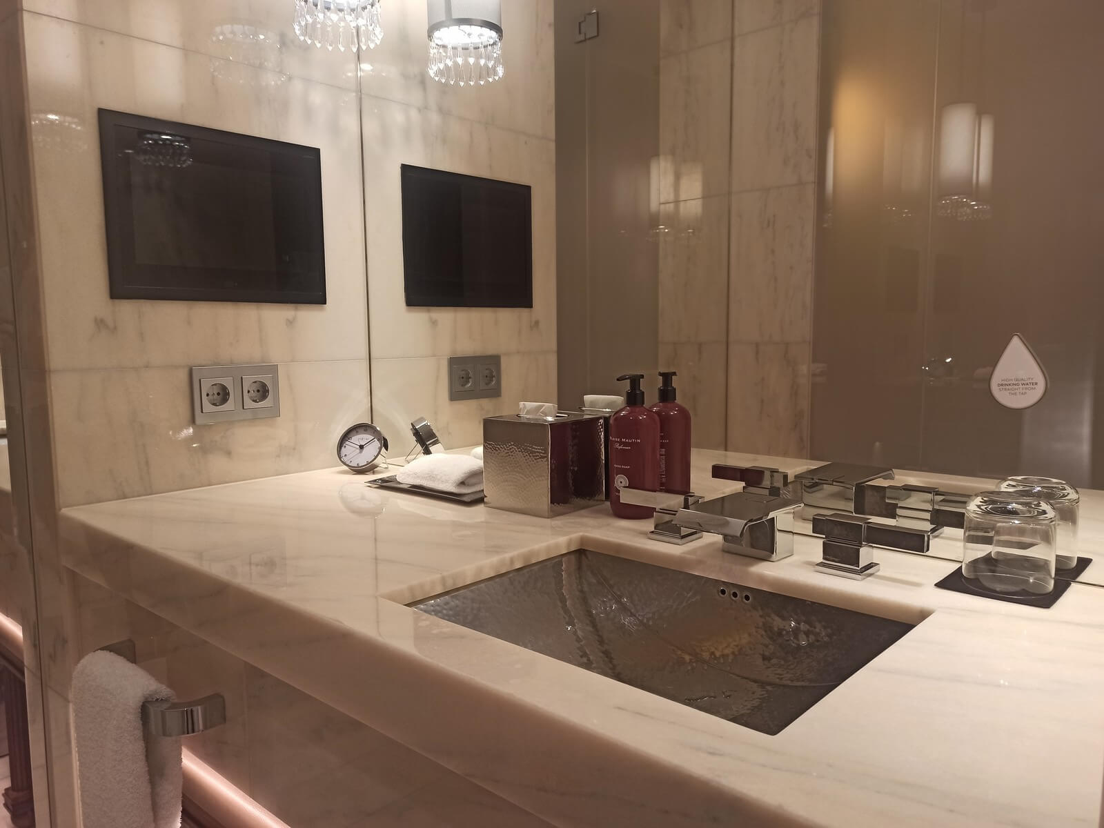Ich entschied mich für Ersteres und wir nutzten die hervorragende Lage des Hotels, um die fußläufigen Sehenswürdigkeiten zu besuchen. Um 13:06 Uhr erhielt ich dann bereits eine E-Mail, die mir mitteilte, dass das Zimmer bezugsfertig sei. Später, kurze Zeit nach dem Beziehen des Zimmers, brachte der Room Service noch ein Welcome Amenity sowie eine Grußkarte des Director of Rooms auf das Zimmer.