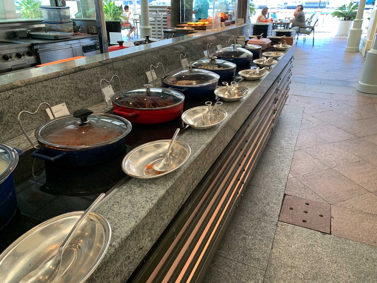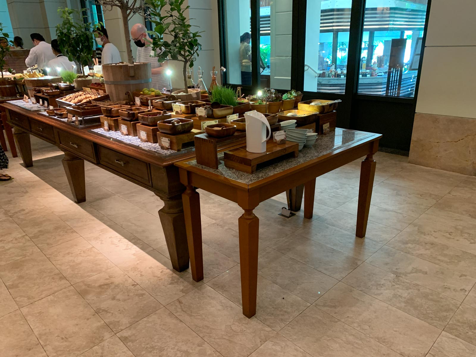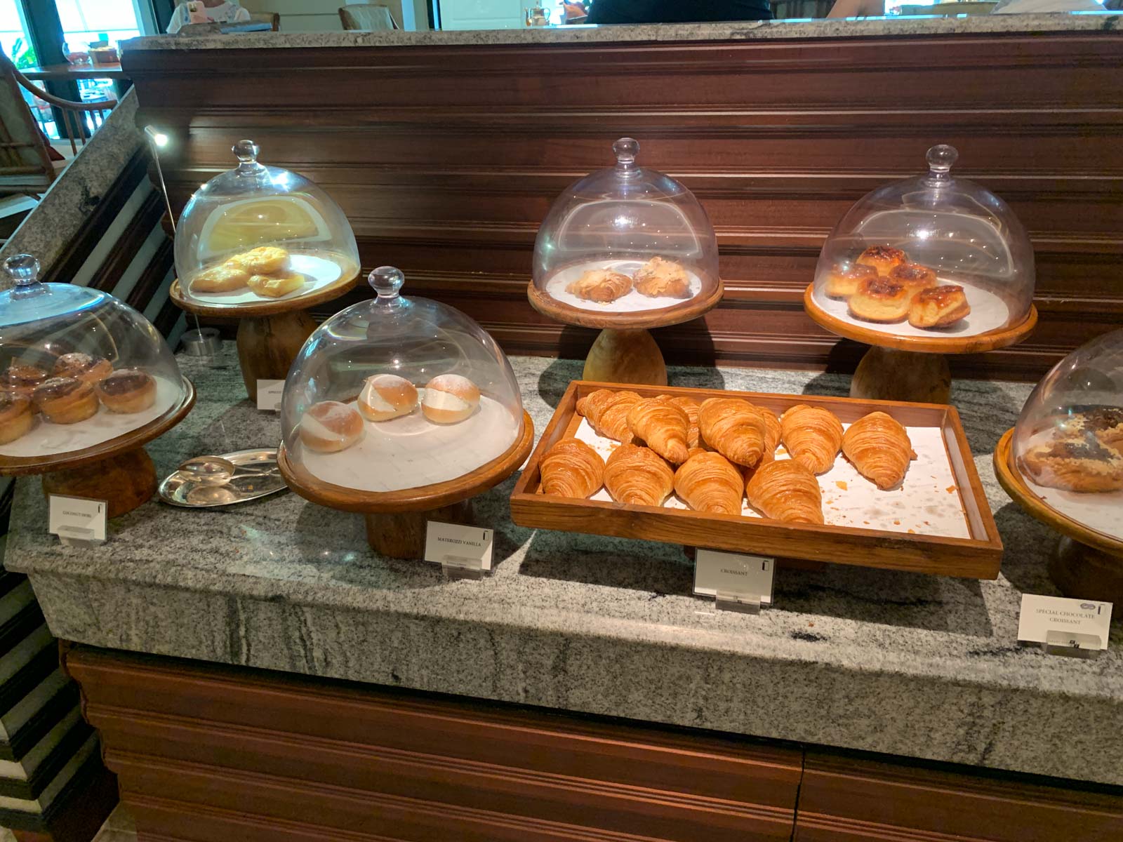 Nach Angabe der Zimmernummer wird man zum Tisch geführt und nach den Getränkewünschen gefragt. Alles andere gibt es dann in Form eines Buffets oder an verschiedenen Live-Cooking Stationen. Sowohl qualitativ als auch quantitativ konnte das Buffet überzeugen. Ob klassisch mit Brötchen und Aufschnitt oder Marmelade, Früchten und Joghurt, oder Asiatisch, es gab eigentlich alles. Wirklich viel Hunger hatte ich leider nicht, deshalb blieb es bei einem Croissant und einem Omelette. Beides war sehr gut.