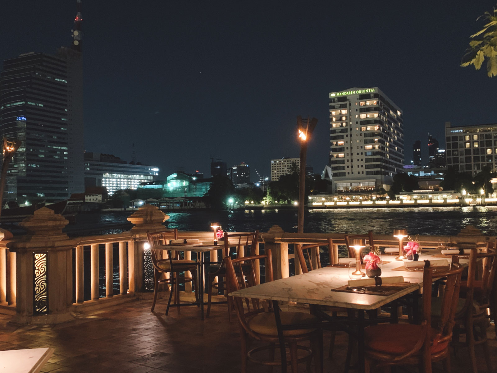 Das Thiptara Restaurant bietet “Contemporary Thai Cuisine”. Wir haben nach dem Pool kurz die Speisekarte angeschaut und uns spontan dazu entschieden, hier am Abend essen zu gehen. Das Essen ist alles andere als günstig, besonders für Thailand, dafür passt aber auch alles. Der Service ist sehr aufmerksam, das Essen und der Wein hervorragend, und die Aussicht auf den Fluss und das dortige Treiben bieten eine besondere Atmosphäre. Bevor man zum Platz geführt wird darf man auf dem Holzdecks des Restaurants einen alkoholfreien Drink sowie ein Häppchen genießen.