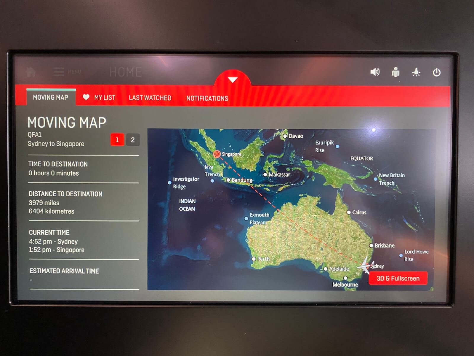 Qantas Airways Business Class Airbus A380-800 – Entertainment/WiFi