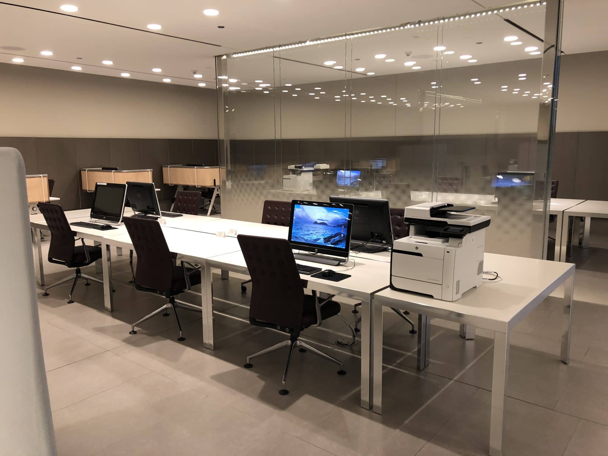 Da wir ein Layover von mehreren Stunden hatten, haben wir auch einige Zeit im Business Center verbracht. Dieses ist mit Schreibtischen, PCs und einem Drucker ausgestattet. Hier scheint sich durch Covid 19 nichts verändert zu haben. Am Schreibtisch haben wir unsere Masken abgenommen und niemand erhob Einwände dagegen. Im Vorzimmer des Business Centers hat man die Möglichkeit, sich an einer Getränkestation oder an Kaffeeautomaten selbst zu bedienen. Wobei das kaum gelingen wird, weil sich innerhalb weniger Momenten eine Servicekraft nähern wird, um euch behilflich zu sein.