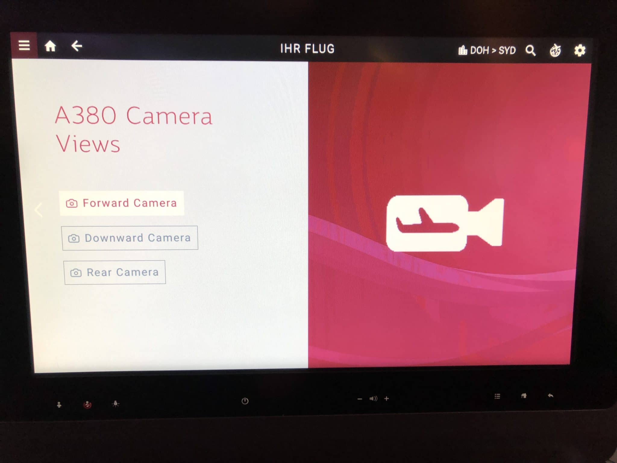 Der Airbus A380 verfügt über drei Außenkameras, die über das Entertainmentsystem den Blick nach draußen ermöglichen. Die Kameras sind nach unten, vorne und hinten ausgerichtet. Leider kann die Qualität der Bilder aber nicht wirklich überzeugen.