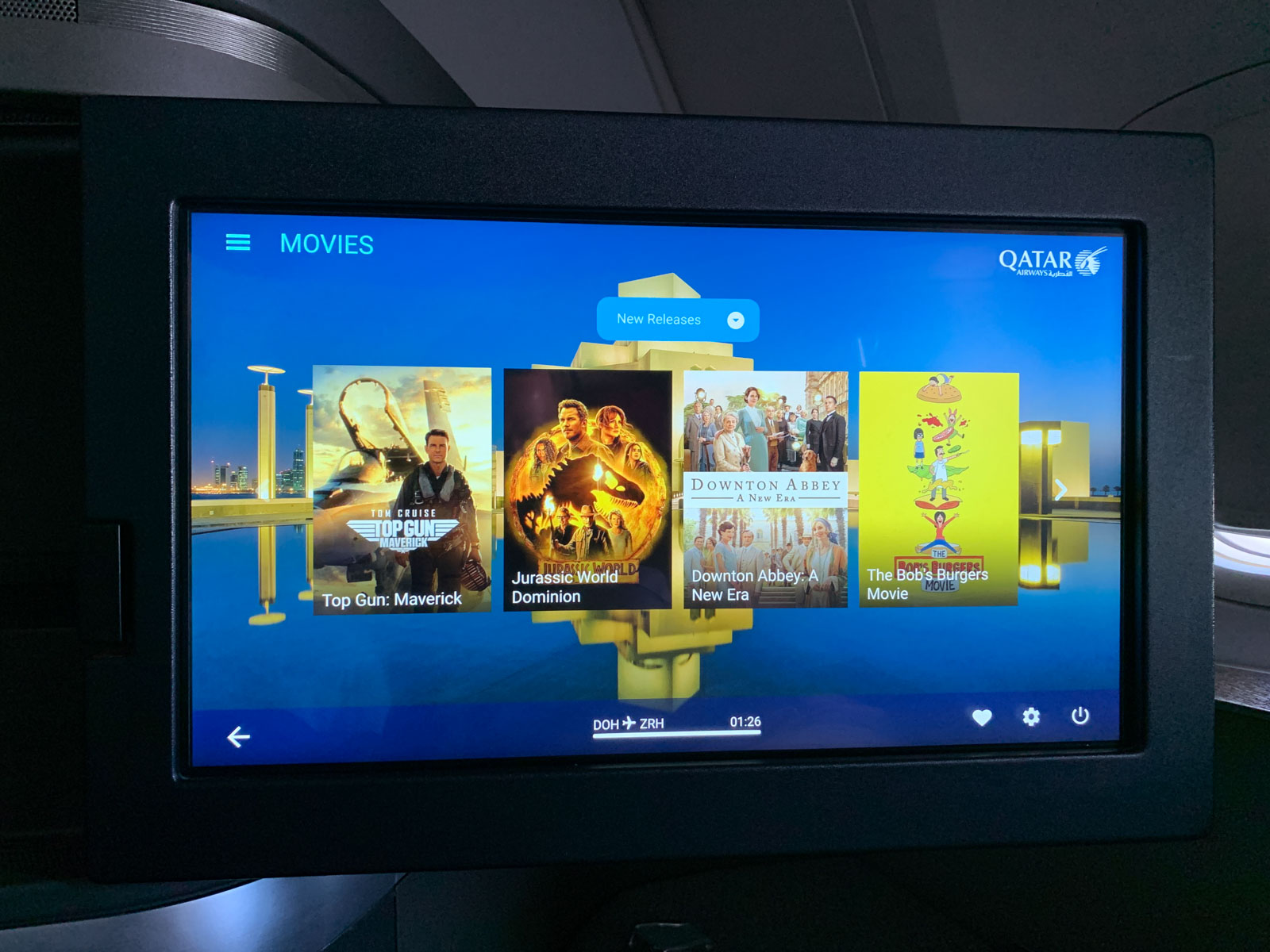 Das IFE hat Qatar Airways typisch eine sensationelle Film- und Serienauswahl, auch was neue Blockbuster betrifft. Abstriche muss man hier aufgrund des Alters bei der Größe des Monitors bzw. dessen Auflösung machen, aber es hält sich in Grenzen und für ein paar Filme genügt es.