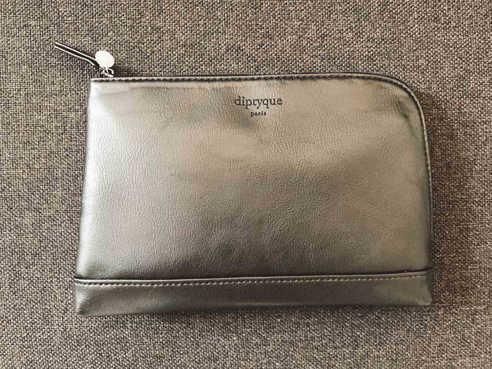 Das Amenity Kit ist aus Leder und von Diptyque, es enthält Schlafmaske, Socken, Ohrstöpsel sowie verschiedene Cremes/Lotions und eine Parfumprobe. Die Tasche ist relativ groß und findet sicher auch abseits vom Amenity Kit Dasein eine Berechtigung. Der Pyjama ist anlässlich der derzeit stattfindenden Fußballweltmeisterschaft designt; das Oberteil erinnert an ein Trikot, hinten drauf prangt ein großer Nummernaufdruck. Die Slipper waren okay aber sind nichts, was ich zu Hause anziehen würde.