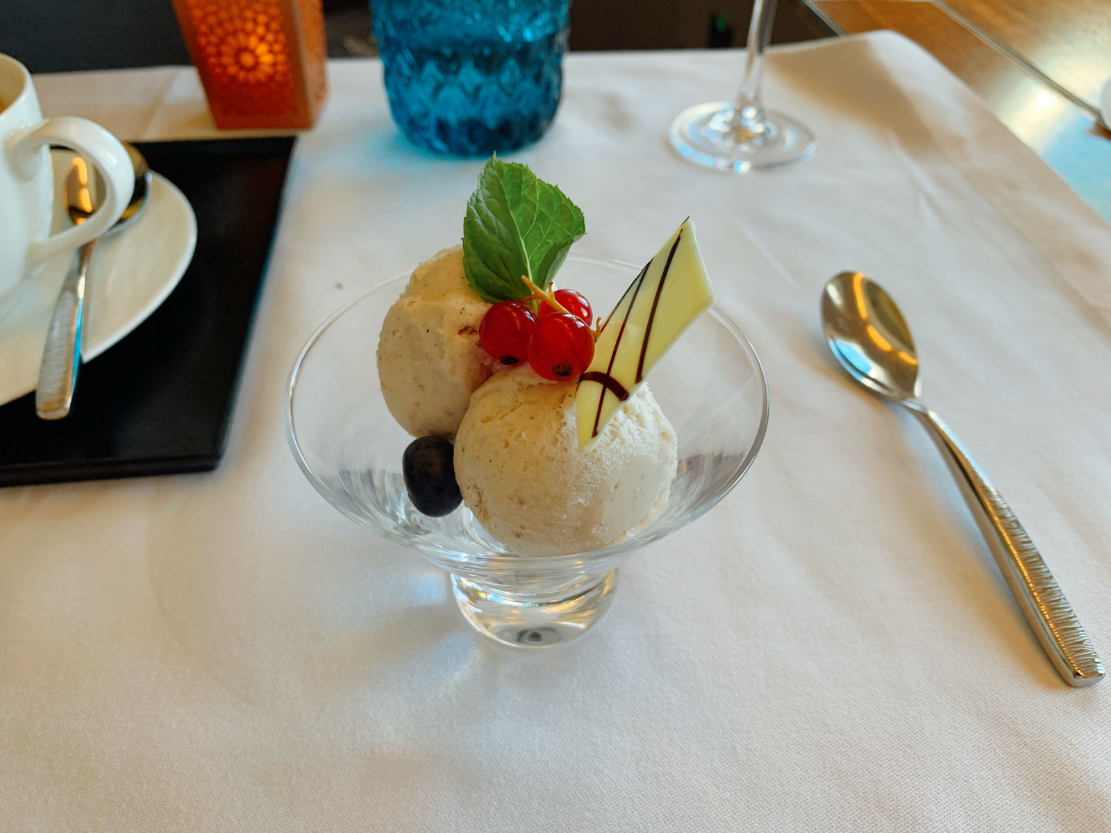 Anschließend folgte noch ein Eisbecher zum Dessert, zusammen mit einem Kaffee bzw. einer heißen Schokolade mit viel Schaum, so wie es sein muss!