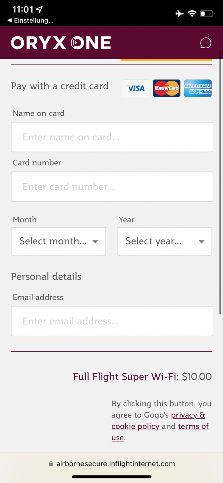Da ich eigentlich nie im Flugzeug arbeite und lieber die Annehmlichkeiten an Bord genieße, habe ich auf WiFi verzichtet.