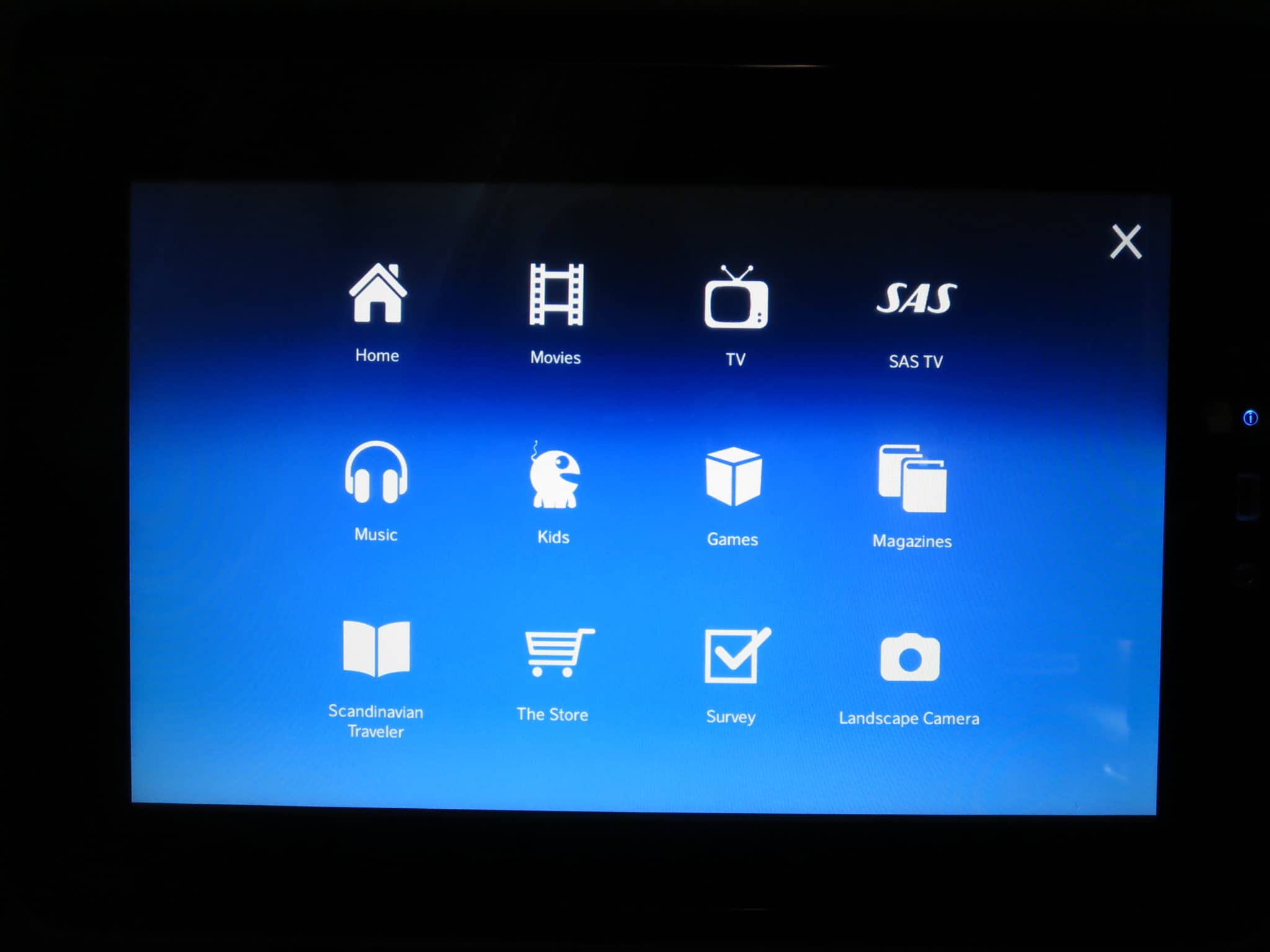 Beim Entertainment System setzt SAS auf individuelle 15,4 Zoll (39cm) HD-Monitore an jedem Platz. Die Bedienung erfolgt über die kleine Fernbedienung in der Seitenkonsole oder per Touch-Bedienung über den Bildschirm selbst. Dies hat wunderbar funktioniert, da das System recht sensibel auf Berührungen reagiert. Im Gegensatz zu anderen Airlines muss man also nicht auf den Monitor “einprügeln”. Auch kann man den Bildschirm recht gut erreichen, wenn man in der aufrechten Sitzposition sitzt. Die Hardware ist also definitiv konkurrenzfähig.