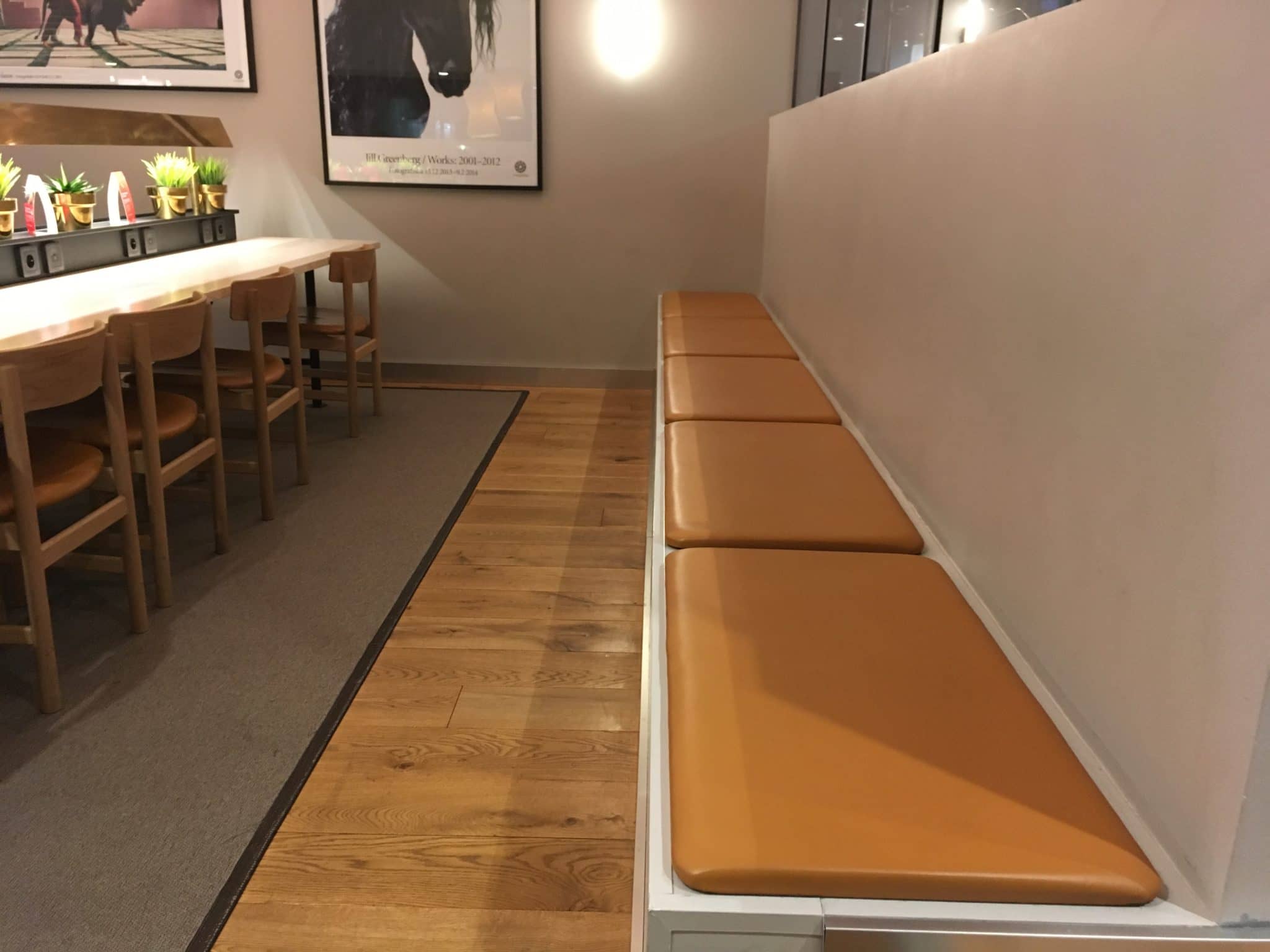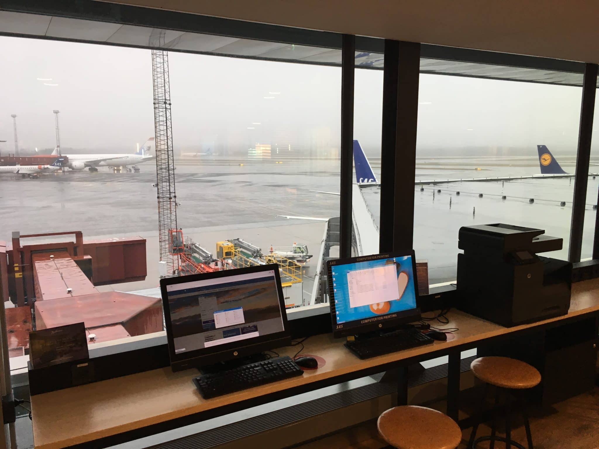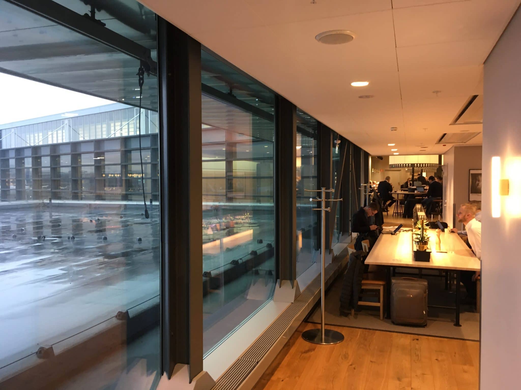 Die SAS Gold Lounge macht auf den ersten Blick ein guten und sehr hellen Eindruck. Das liegt daran, dass sich auf beiden Seiten große Fensterfronten mit Blick auf das Rollfeld befinden. Im Vergleich dazu bietet die normale SAS Business Lounge lediglich einen Blick auf die Abflugshalle und die Checkin Schalter. Eigentlich bietet die Gold Lounge relativ viele Sitzmöglichkeiten, doch ich habe es noch nicht erlebt, dass die Lounge wirklich leer ist. Vielleicht liegt das auch daran, dass der Star Alliance Gold Status über SAS EuroBonus relativ einfach zu erreichen ist (Die 6 besten Wege den Star Alliance Gold Status zu erreichen). Gerade im Bereich, in dem das Buffet aufgebaut ist, sammeln sich die Leute um an den hohen Tischen zu essen, was auf den Ikea Sesseln und den niedrigen Tischen doch etwas schwerer fällt. Der Arbeitsbereich an den zwei langen Tischen ist auch eher suboptimal, da man seinen Nachbarn schon sehr auf die Pelle rückt, sollte man nicht einen Stuhl dazwischen freilassen.