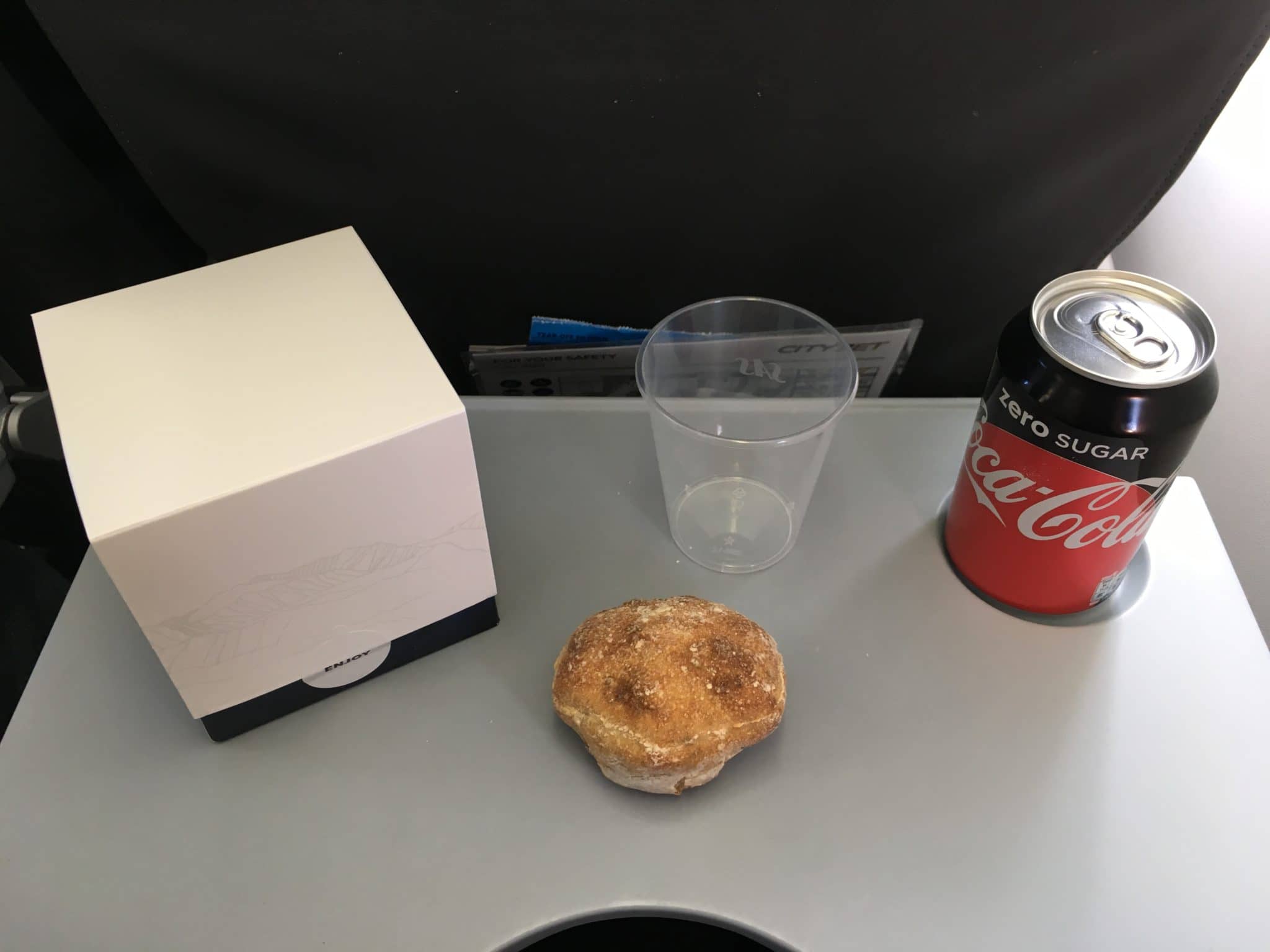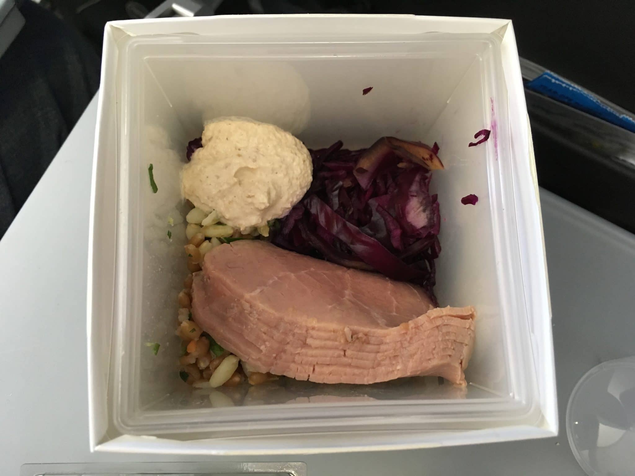 Im SAS Plus Tarif erhaltet ihr alle Getränke kostenlos. Auf Nachfrage bekommt ihr auch noch ein zweites Glas bzw. Dose, vorausgesetzt der Flug ist lang genug. In der Economy Class wird bei SAS lediglich Kaffee, Tee und Wasser ausgeschenkt. Das Essen in SAS Plus ist absolut kein Highlight. Auf Strecken unter einer Stunde habt ihr die Wahl zwischen einem Reindeer oder Käse Wrap. Von SAS wird es als Sandwich bezeichnet. Ich habe aber andere Vorstellungen von einem Sandwich. Bei der Wahl zwischen Käse und Reindeer würde ich euch zum Käse Wrap empfehlen. Es werden auch Nüsse, Chips und Schokolade angeboten. Allerdings weist nicht jeder Flugbegleiter drauf hin. Die Nüsse sind wirklich gut. Es gibt entweder Mandeln oder ein Nuss-Mix. Solltet ihr auf inneuropäischen Strecken mit mehr als 60 Minuten Flugzeit unterwegs sein, gibt es meistens einen Salat. Dieser Salat wird in einer quadratischen Box serviert. Der Inhalt der Box ist in der Regel Chicken oder Lachs mit etwas Salat, kalten Kartoffeln und einer Sauce, die leider teilweise einen üblen Geschmack hat. Dazu gibt es noch ein, oder zwei warme Brötchen mit Butter. Zum Nachtisch bekommt ihr noch 3 Pralinen angeboten. Vor kurzem hatte ich aber auch einen Flug knapp unter einer Stunde, wo es lediglich Snacks gab und nicht mal ein Wrap oder Sandwich.  Der Service ist in der Regel recht gut und die Flugbegleiter, wie die meisten Skandinavier, recht freundlich.