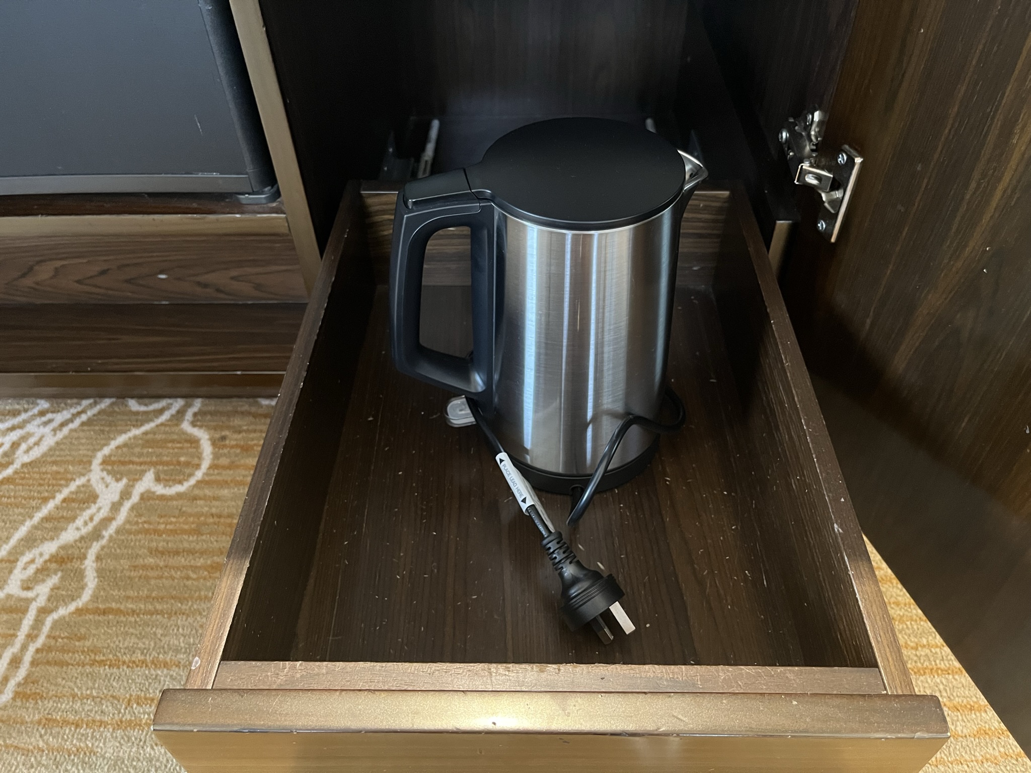 Die Minibar war mit den üblichen Softdrinks und alkoholischen Getränken ausgestattet. Optisch sehr ansprechend fand ich die vorgemixten Cocktails. Kaffee gab es nur in Form von Instant Coffee und einem Wasserkocher. Eine Nespresso-Maschine oder ähnliches gab es nicht.