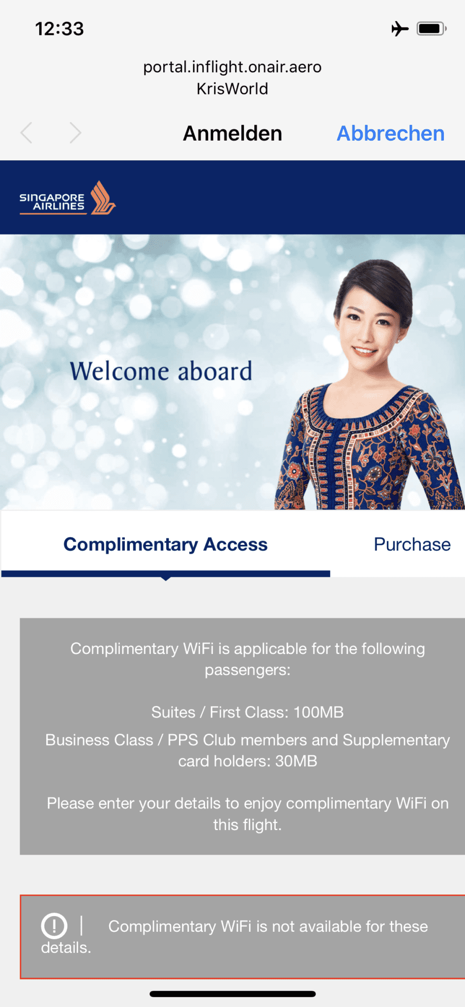Wie auch auf anderen Singapore Airlines Flügen bekommt ihr als First Class Passagier 100MB kostenlosen WiFi Zugang. Das reicht locker um einen Instagram Post zu machen, oder das ein oder andere nachzugucken. Ich denke für einen 3,5 Stunden Flug ist das mehr als ausreichend und es bedarf keinem zusätzlichen Kauf an weiteren MB. Dennoch sind hier die Preise für euch.