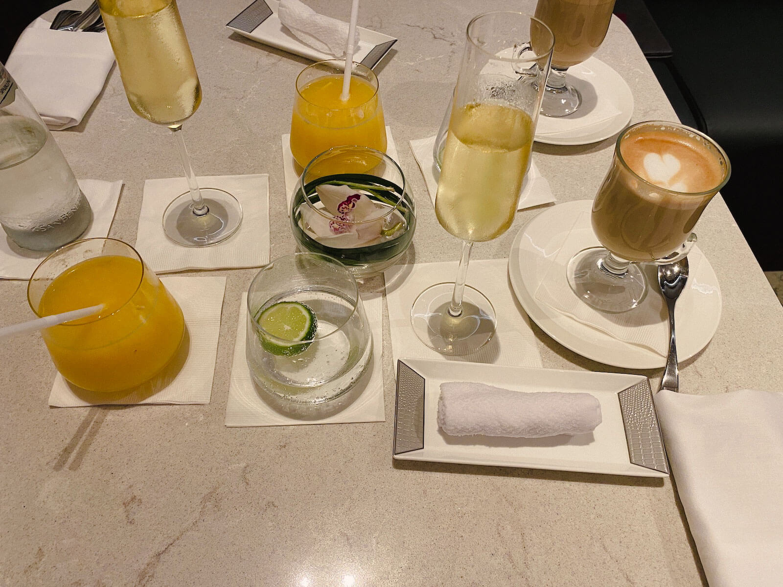 Am Service habe ich gar nichts auszusetzen, der war wirklich gut. Als wir uns einen Platz gesucht haben, kam der erste Kellner und brachte uns das Menü. Wir bestellten ein Glas Wasser und ein Glas Champagner. Das Wasser wurde sogar in einer Flasche serviert und nicht nur in einem Glas. Nach ein paar Minuten suchten wir uns einen Tisch im Restaurant-Bereich, wo uns erst einmal ein warmes Tuch gereicht wurde. Während des gesamten Aufenthaltes fühlten wir uns gut aufgehoben und wurden teilweise mit Namen angesprochen. Die Kellner hatten auch ein Auge auf das leere Champagner Glas und kamen regelmäßig vorbei und fragten, ob nachgeschenkt werden sollte.