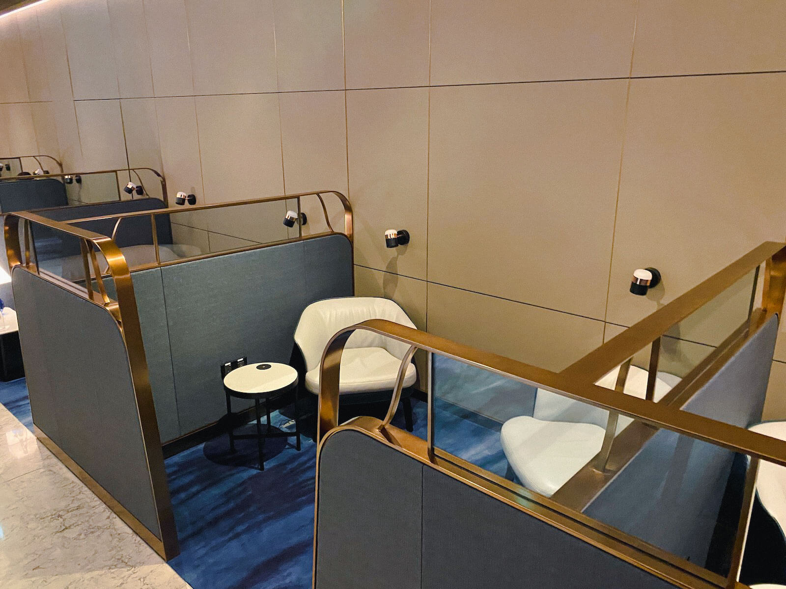 Zusätzlich bietet die Lounge vier private Ruhekabinen, wovon zwei ein Bett haben und die anderen beiden lediglich einen Sessel mit Recliner Funktion. Während meines Besuches waren die beiden Schlafkabinen belegt. Die Ruheräume können aktuell nur von einem Angestellten geöffnet werden. In Zukunft ist geplant dies mit einem QR Code zu lösen. Die Ruheräume dürfen nur von einer Person belegt werden.
