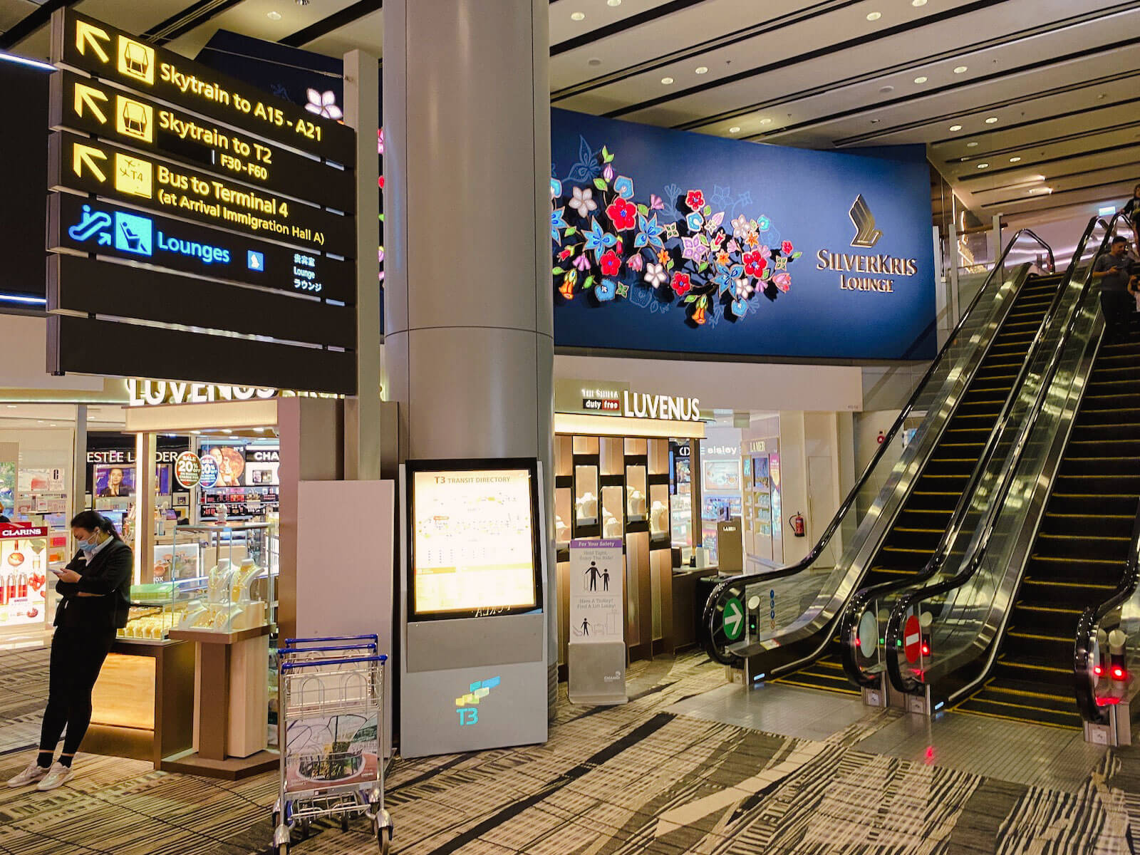 Für First Class Passagiere gibt es eine separate Emigration in Terminal 3, direkt gegenüber vom Ausgang des First Class Check-In Bereiches. An den elektronischen Passkontrollen ging alles recht zügig vonstatten und nach wenigen Minuten standen wir im Abflugbereich des Terminals. Der Weg zur Lounge von der Emigration ist ein kurzer. Ihr solltet beim Betreten des Abflugbereiches bereits die Rolltreppe in der Ferne sehen, die euch zu den Lounges von Singapore Airlines auf der oberen Ebene bringt. Dort gaben wir der Empfangsdame unsere Einladung zum Private Room und sie begleitete uns bis in die Lounge zu unserem ausgewählten Sitzplatz.