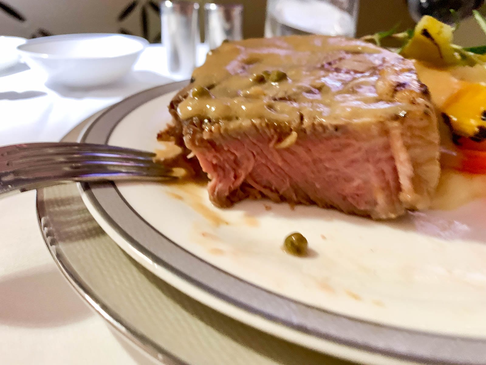 Nach dem Essen war ich satt, hundemüde, und nach all dem Champagner, dem Cocktail und dem Wein wohl auch etwas angetrunken. Mit anderen Worten: Es war höchste Zeit für das Bett, und aus diesem Grund habe ich auch auf ein Dessert verzichtet. Das nächste Mal dann, versprochen.