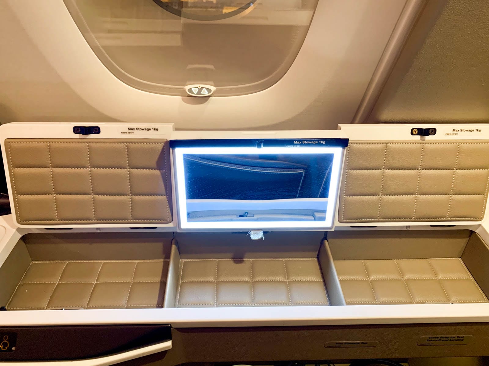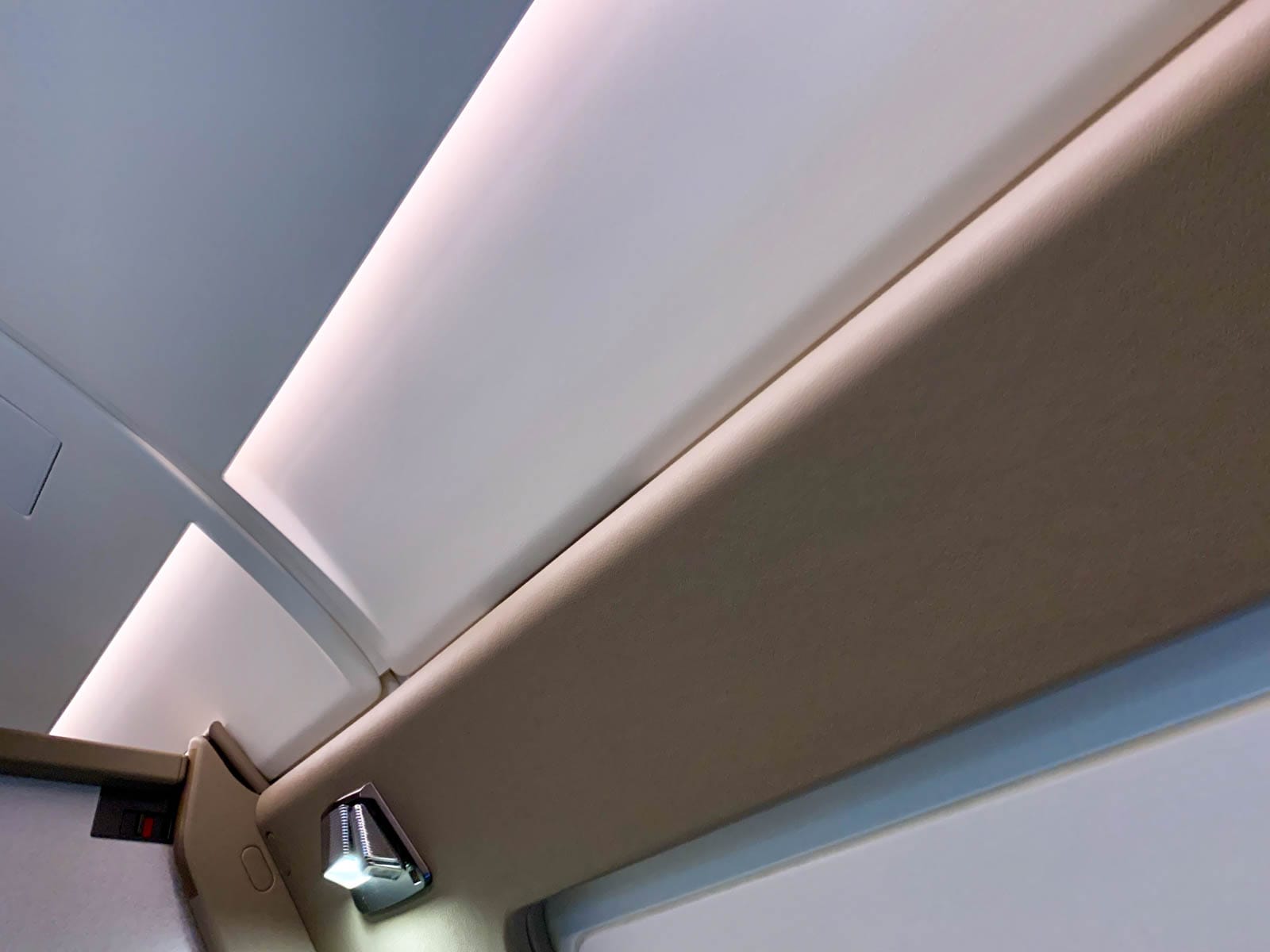 Was bereits mehrfach in anderen Reviews bemängelt wurde, und ich ebenfalls ein Stück weit unterschreiben kann, ist die Verankerung des Sitzes. Dadurch, dass dieser frei in der Kabine auf nur einem Gelenk steht fängt er bei Turbulenzen schnell zu ruckeln an, was störend sein kann. Und die fensterseitige Leiste mit Staufächern und Bedienelementen hätte ich mir an die Seite gewünscht, so dass der Sitz näher am Fenster stehen kann und das Hinausschauen besser möglich ist. Nichtsdestotrotz gefiel mir die Suite insgesamt sehr gut, was nicht zuletzt am separaten Bett gelegen hat.