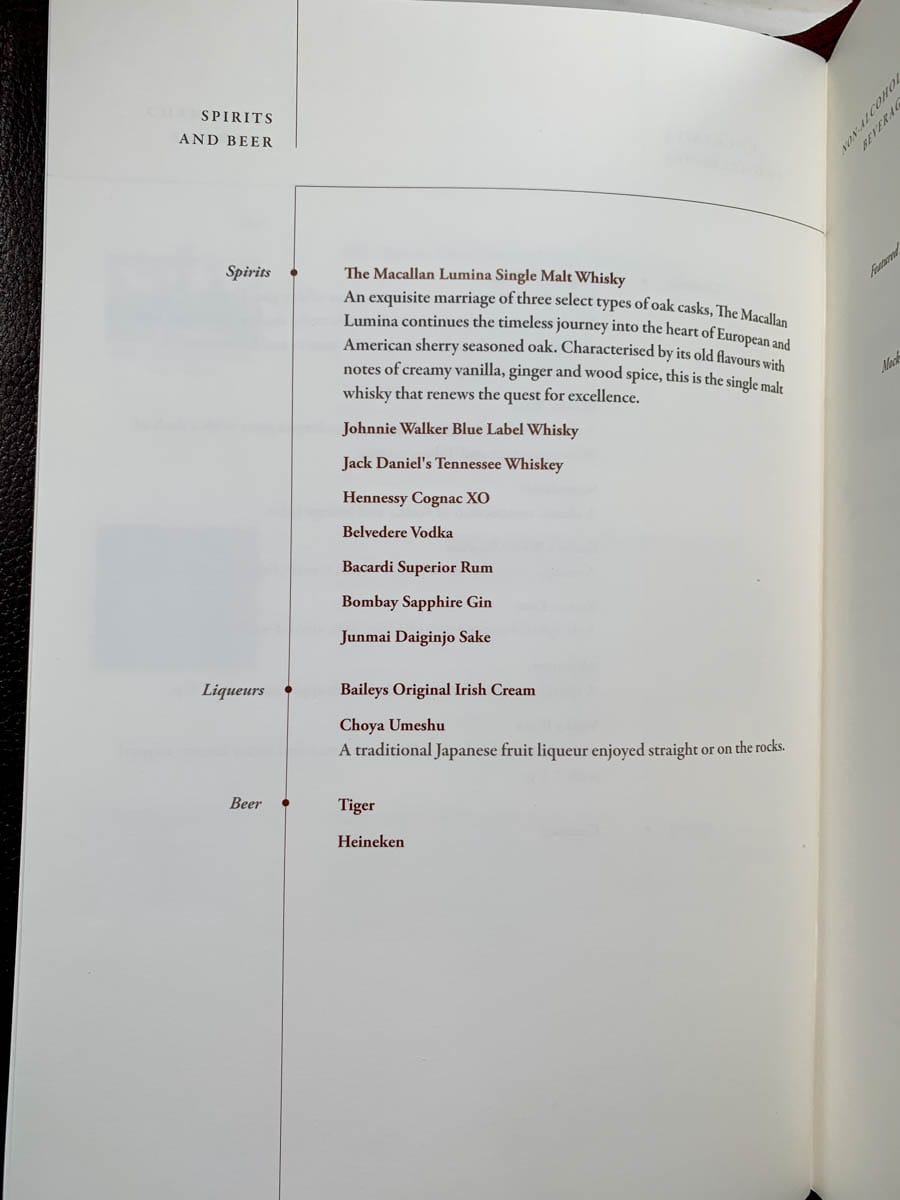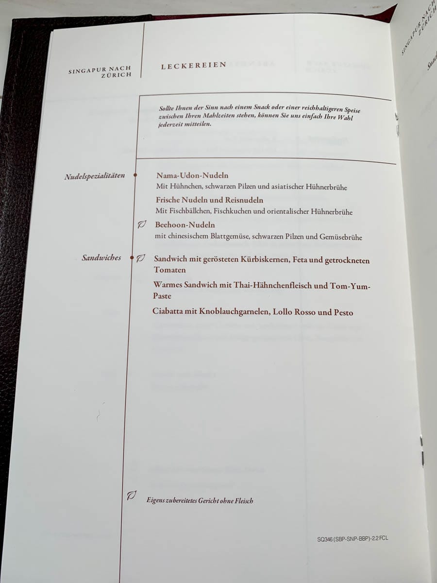 Verglichen mit einem Tagflug habe ich hier natürlich versucht den Schlaf zu maximieren und entsprechend auch keine Snacks zwischendrin gegessen. Aber die Karte ist so umfangreich, dass man selbst bei 12 Stunden Daueressen vermutlich nicht damit durch wäre.