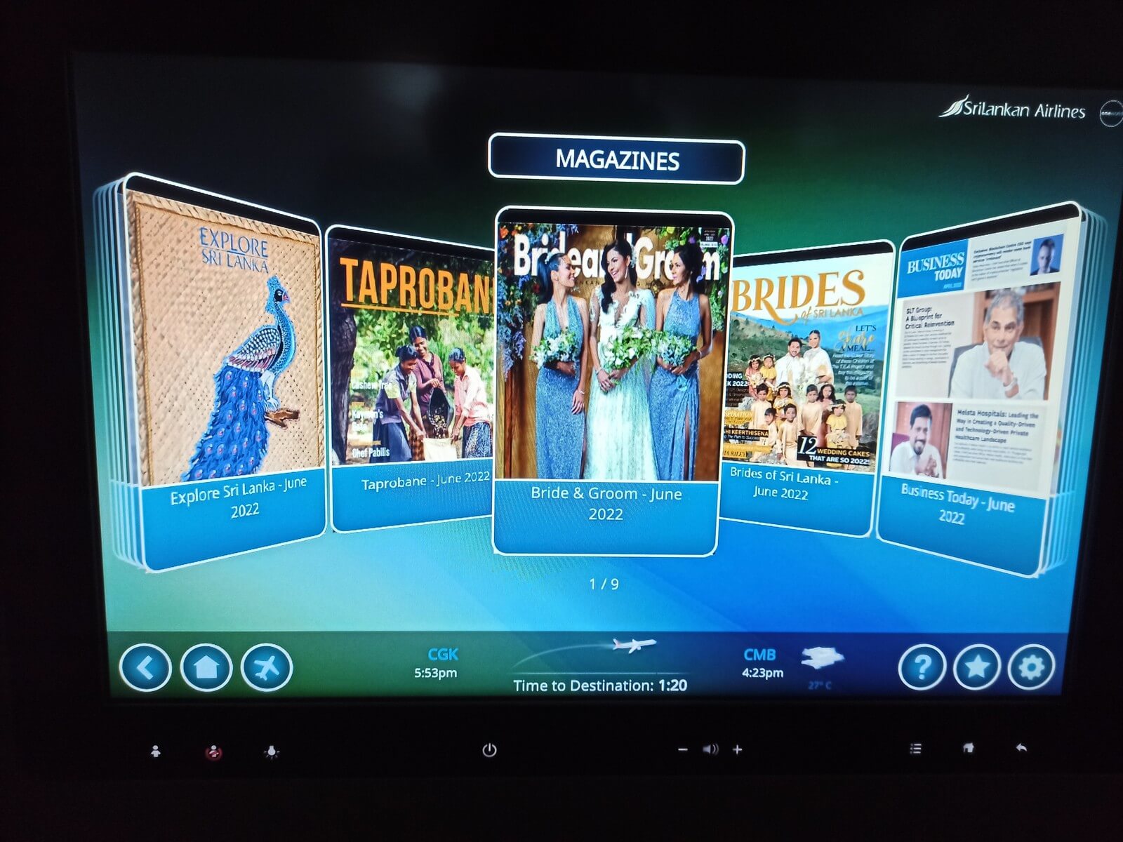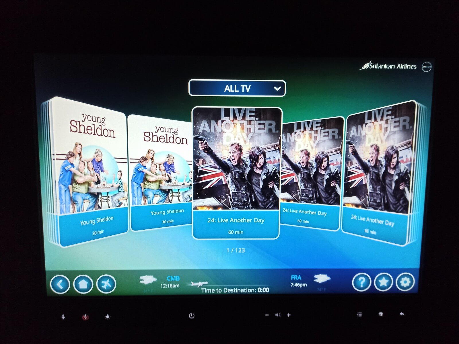 Das Entertainment System kann man mit “befriedigend” bewerten. Die Monitore sind ausreichend groß und können per Fernbedienung oder per Berührung mit dem Finger bedient werden. Die Reaktionszeit des System ist schnell. Ein Anpassen / Neigen der Bildschirme an die Sitzhaltung ist leider nicht möglich. Mehrere Filme wurden auch auf deutscher Sprache angeboten. Man kann allerdings nicht direkt nach deutschsprachigen Filmen filtern. Die Auswahl bei Filmen (97), Serien und Musik ist breit gefächert. Ihr findet außerdem Magazine, News, Wetter- und Fluginformation sowie Außenbordkameras. Die Spiele waren leider nicht verfügbar. Eine Auswahl der Filme, die aktuell bei SriLankan Airlines angeboten werden, findet ihr auf der offiziellen Homepage von SriLankan Airlines.