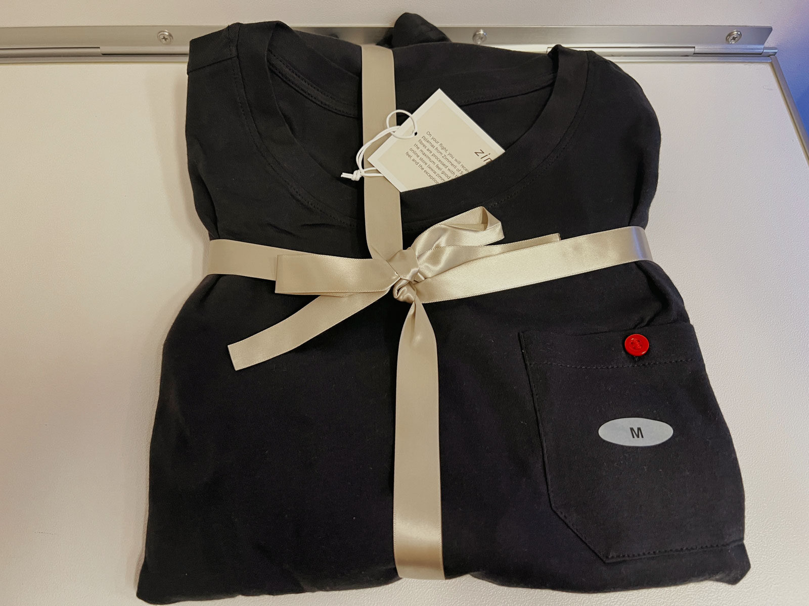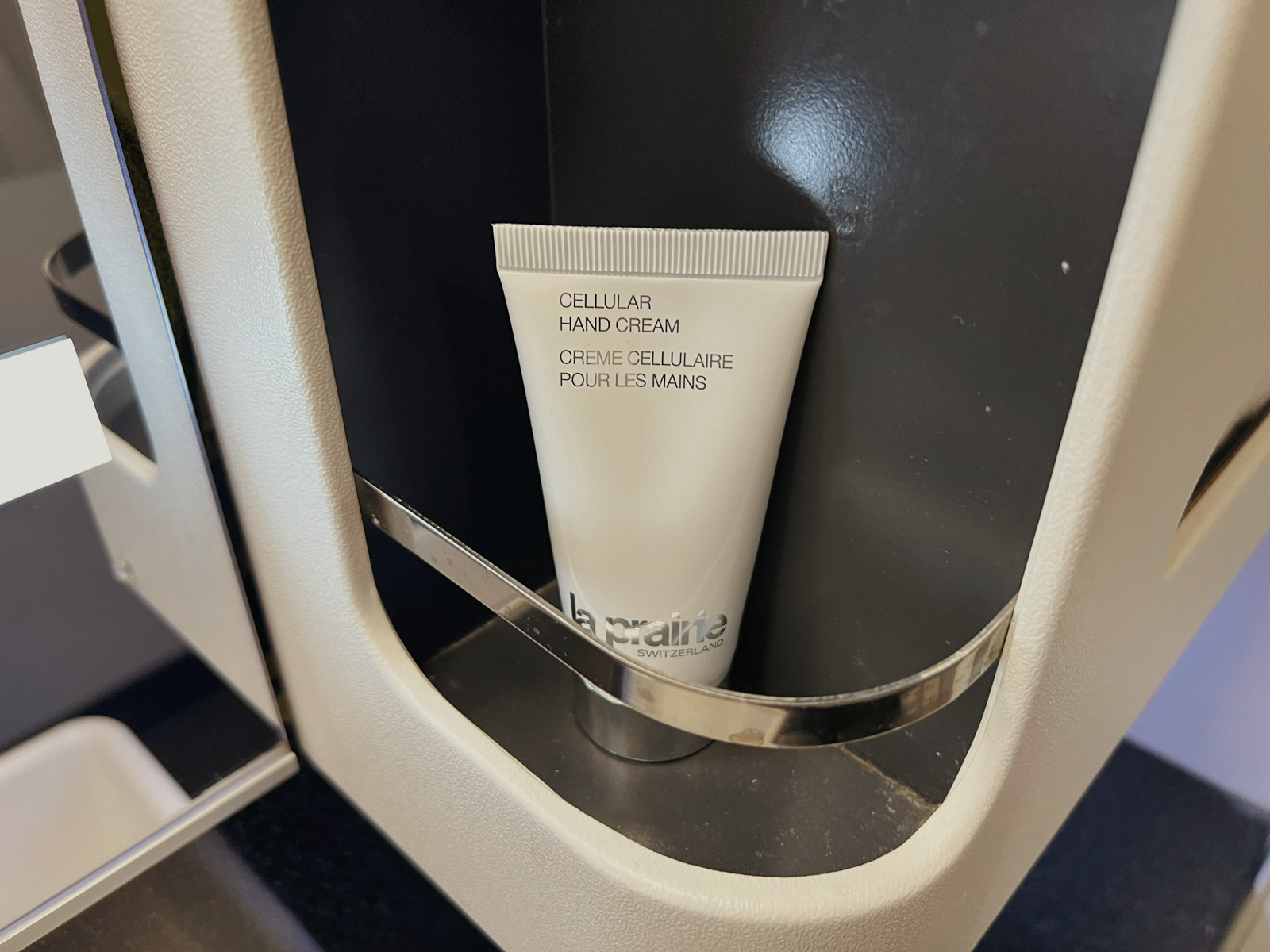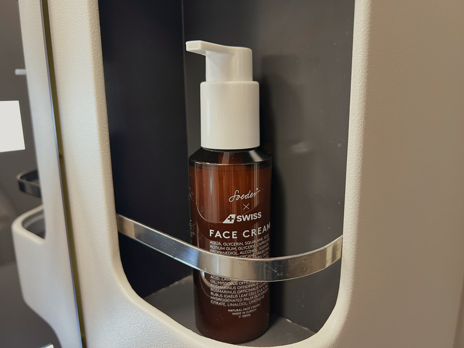 Während früher bereits beim Boarding die Amenities wie Schlafanzug, Slipper und Amenity Kit bereits auf dem Ottoman auf die Passagiere gewartet haben, so war das dieses Mal nicht der Fall. Am Platz lagen eigentlich nur die Slipper, das Amenity Kit wurde kurz nach Boarding ausgeteilt. Den berühmten Zimmerli-Pyjama hingegen gab es nur auf Nachfrage, was ich dann doch etwas merkwürdig fand – ist das mittlerweile so üblich?
