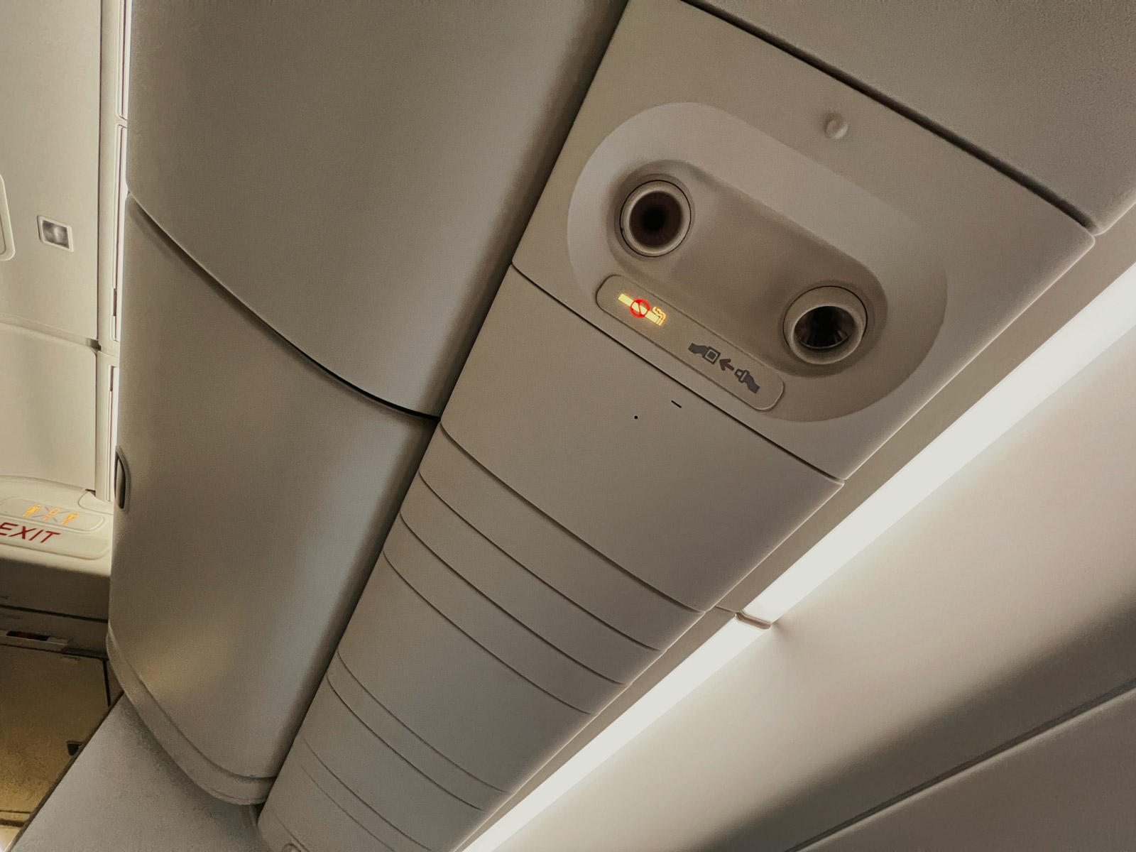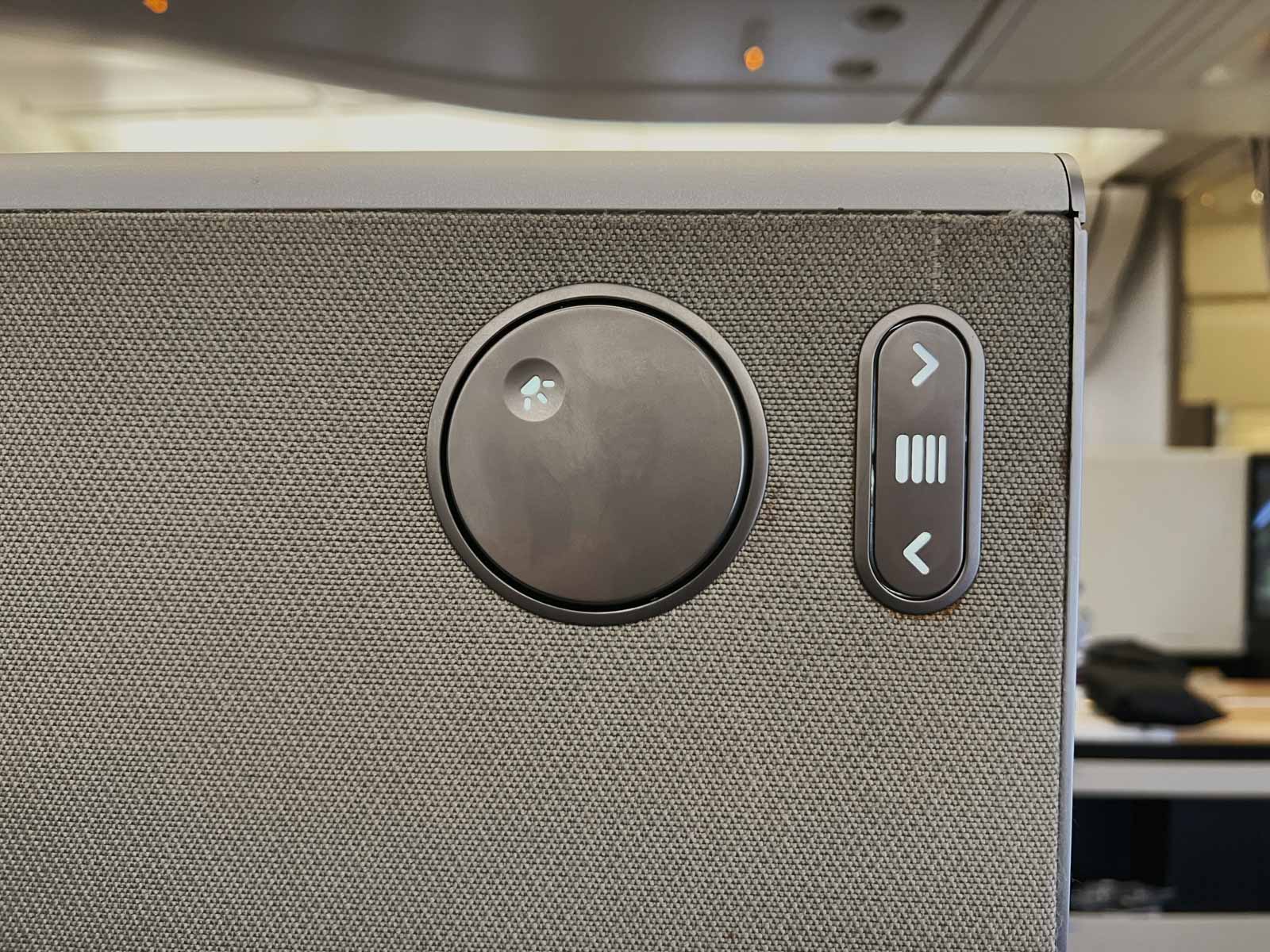 In der seitlichen Klappe bei der IFE Fernbedienung und den Sitzeinstellungen gibt es außerdem noch Stromanschlüsse für USB und internationale Stecker. Die Fenster werden von der Crew bedient, können aber auch selbst per Knopf am Sitz eingestellt werden.