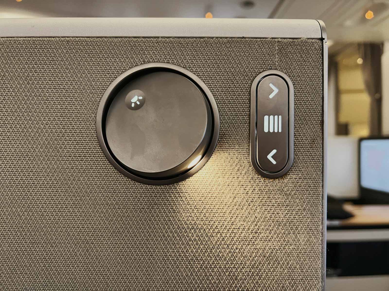 Seitlich hinter der beleuchteten Ablagefläche gibt es zum einen die Sitzeinstellungen, zum anderen lässt sich hier ein Fach öffnen in welchem weitere Sitzanpassungen gemacht werden können.