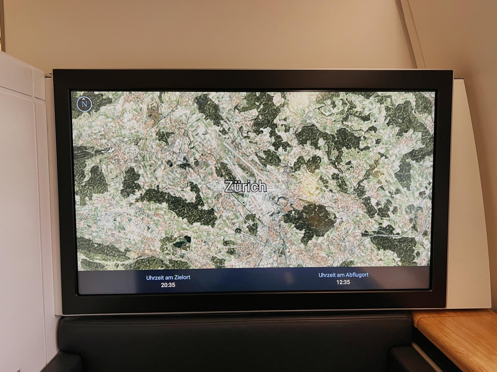 Der Monitor in der Swiss First Class misst 32 Zoll (81cm) in der Diagonale und nimmt dabei fast die ganze Breite der Suite ein. Soweit ich weiß hat der Monitor eine 4K Auflösung, und die Filme und Serien sind auf diese Distanz einwandfrei zu erkennen. Hier gibt es also definitiv nichts zu meckern…