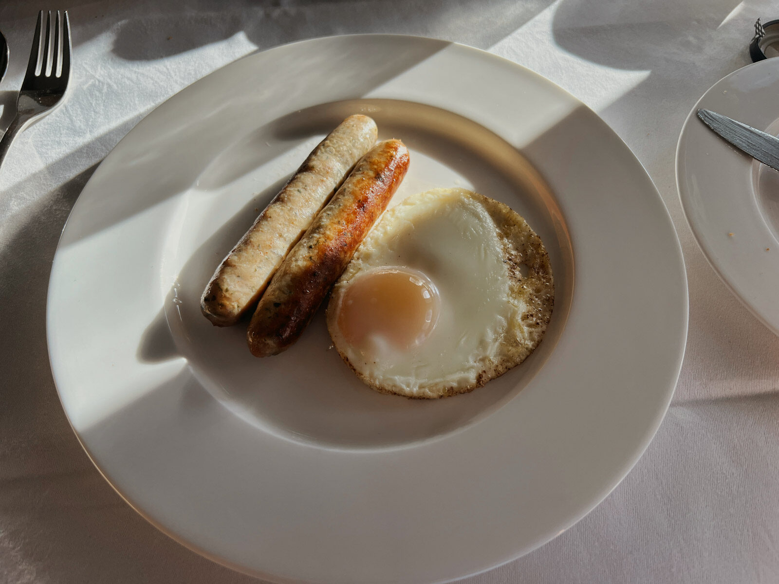Als letzter Passagier entschied ich mich über Seoul ein Frühstück zu bestellen. All zu viel Hunger hatte ich noch nicht, so dass ich lediglich einen Smoothie und einen Kaffee sowie ein Rührei bestellte. Das Rührei war leider bereits alle, aber man bot mir als Alternative ein Spiegelei an, welches zusammen mit zwei Nürnberger Würstchen serviert wurde. Sieht nicht unbedingt nach einem First Class Frühstück aus, war aber genau das, was ich brauchte :)