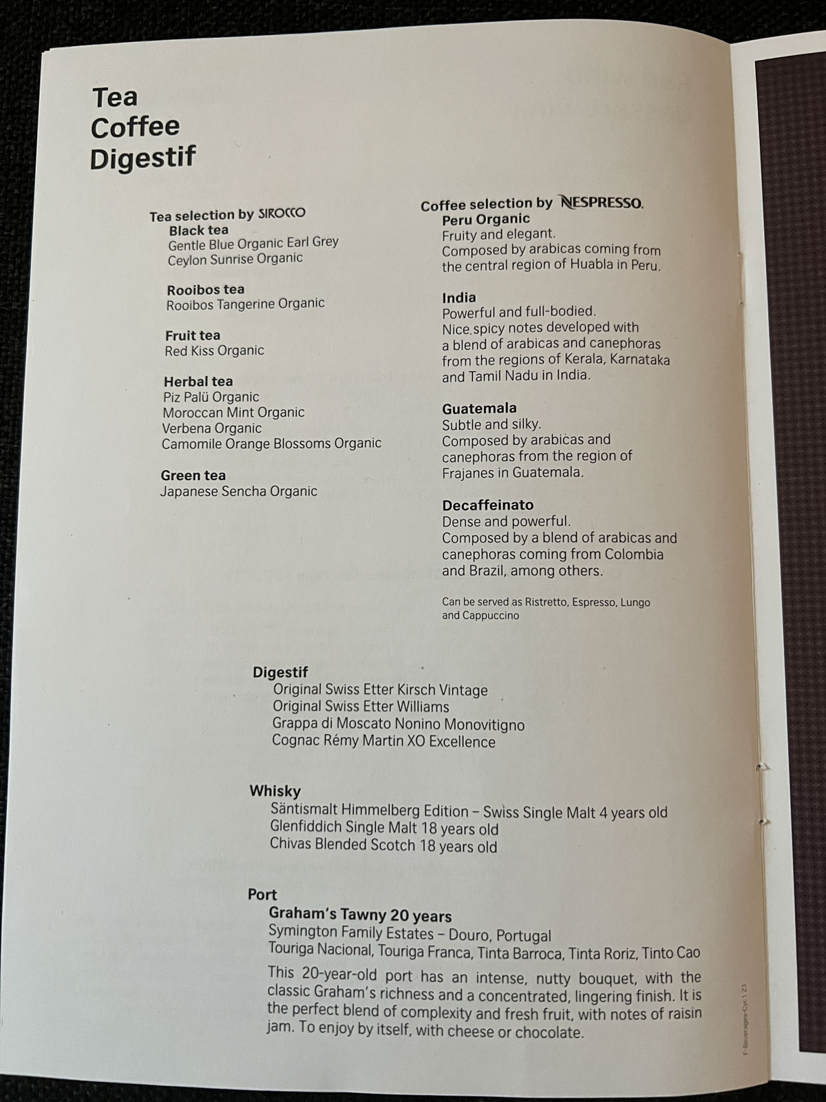Swiss First Class Boeing 777-300ER – Essen/Service