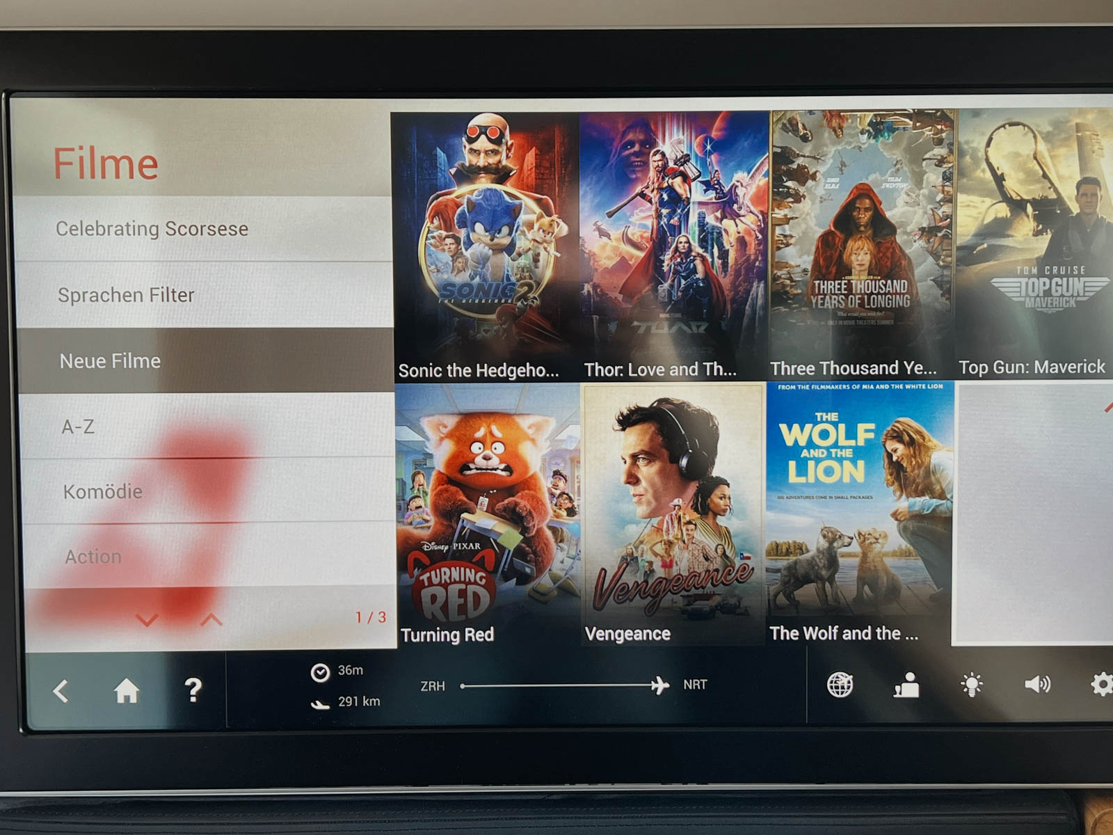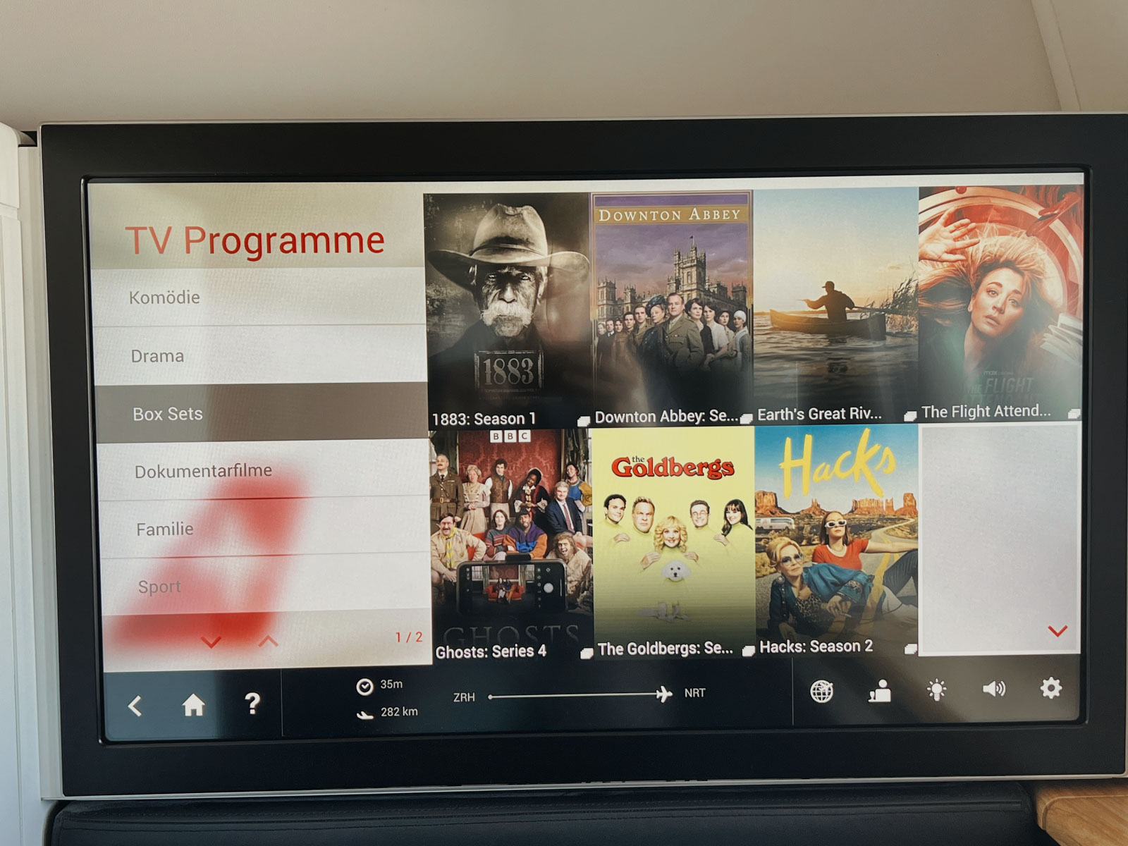 Nicht gerade Anlass zum Meckern, aber eben auch nicht so umfangreich wie bei Qatar Airways, Singapore Airlines, oder Emirates, ist hingegen die Film- und Serienauswahl aus bei Swiss. Es gab durchaus einige neuere Filme und Blockbuster, aber wer mehrere Flüge mit Swiss innerhalb kurzer Zeit hat sollte wohl auch seine Netflix Bibliothek herunterladen…