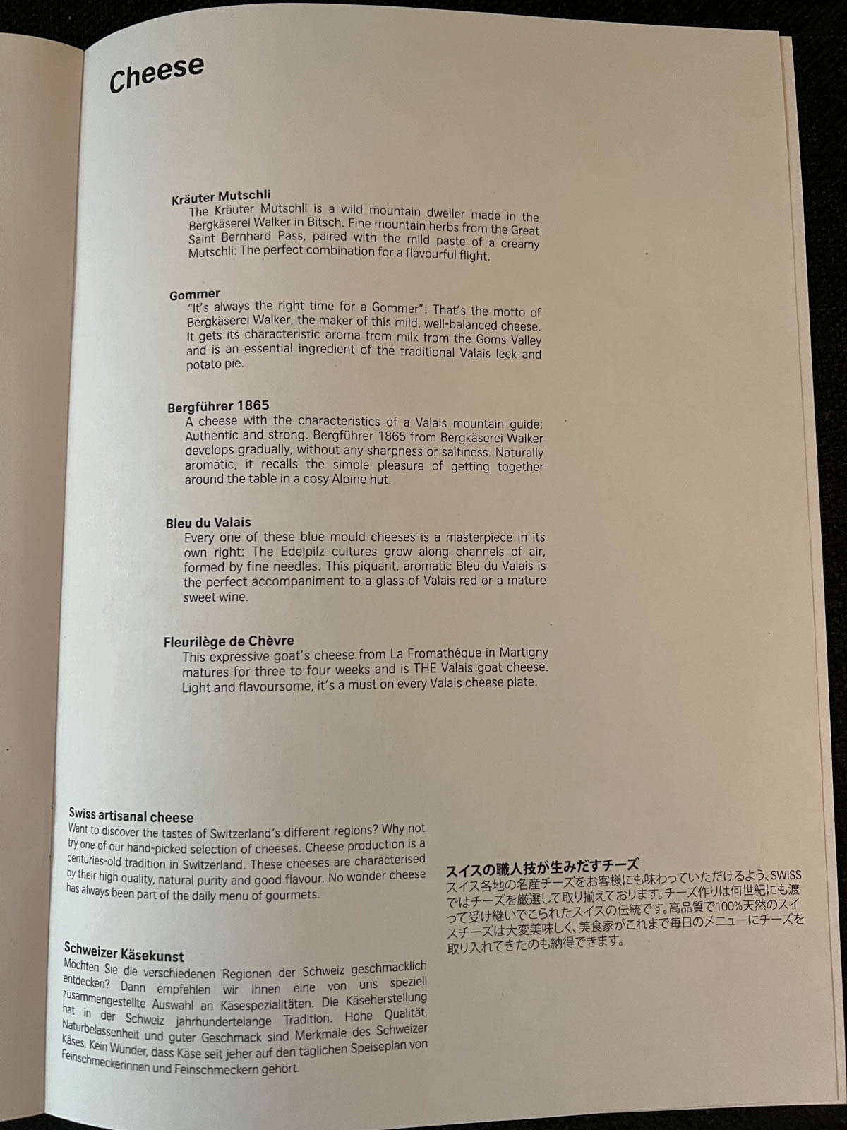 Auf meinem Flug von Zürich nach Tokio war der Fokus der Speisekarte auf Gerichten aus dem Kanton Wallis. Während ich anfangs etwas skeptisch war, so war diese Skepsis bereits bei der Vorspeise schnell verflogen.
