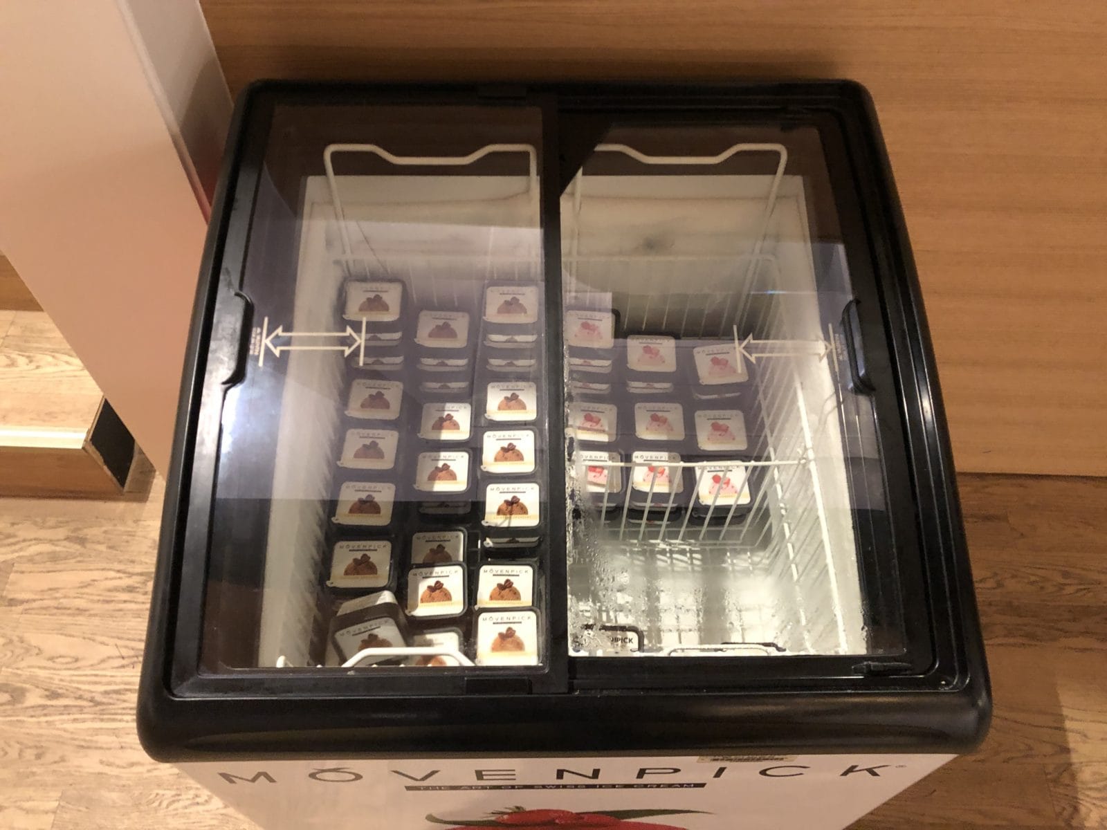 Wer sein Verlangen nach Obst stillen möchte, der kann sich an den zahlreichen Äpfeln bedienen, die den Obstkorb auf dem Tresen füllen. Die Qualität des Essens finde ich durchaus gut. Ein Koch, der einem das Essen “frisch” zubereitet, macht schon einen besseren Eindruck als nur Buffet-Schalen, die aneinandergereiht sind. Für Koffein-Freunde gibt es eine Kaffeestation mit drei Kaffeeautomaten. Daneben gibt es eine Auswahl an Säften, Softdrinks, Bieren und hochprozentigen Alkohol. Eine Truhe von Mövenpick bietet jede Menge Eis.