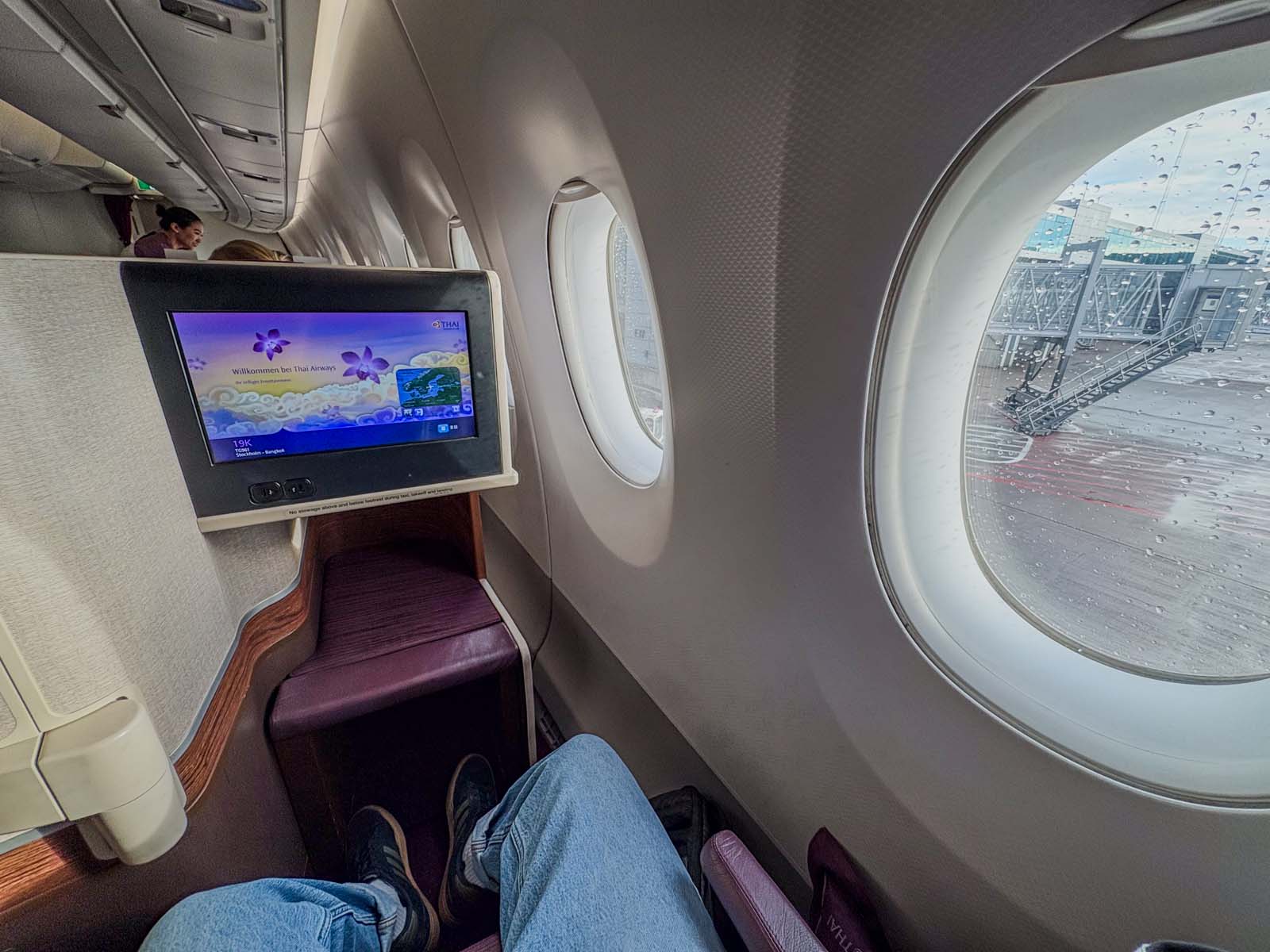 Außerdem erhielt ich eine Einladung zur SAS Lounge, die Thai Airways für ihre Business Class Gäste nutzt. Da mir bis zum Abflug jedoch nur wenig Zeit blieb, verzichtete ich diesmal leider auf den Loungebesuch und machte mich direkt auf den Weg zum Gate. Das Boarding für den Flug nach Bangkok begann pünktlich, zügig und unspektakulär gegen Mittag.