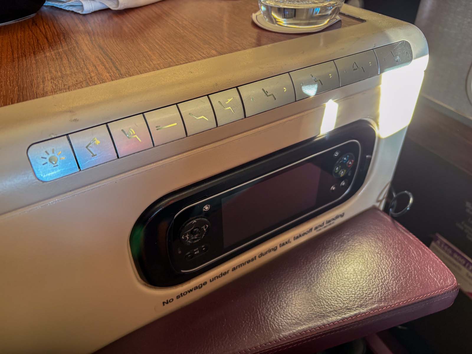 Weniger positiv fiel mir das User-Interface des Entertainment-Systems auf. Die Menüstruktur wirkt deutlich in die Jahre gekommen, die Grafiken erinnern eher an ein Design aus den frühen 2010er-Jahren – funktional, aber weder besonders schnell noch besonders ansprechend. Das Navigieren durch die Menüs machte entsprechend wenig Freude, sodass ich den Bildschirm nach einem kurzen Test schlicht ausgeschaltet ließ und den Rest des Fluges ohne IFE verbracht habe.