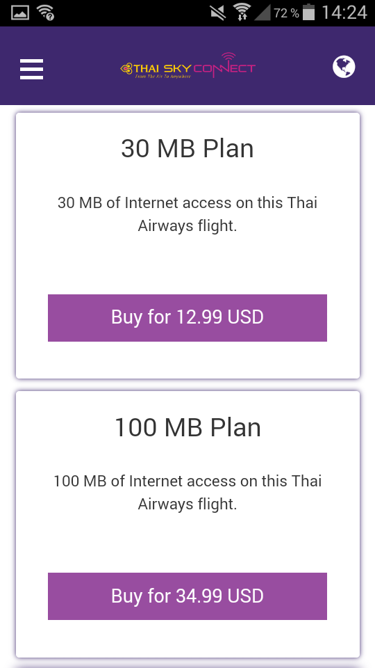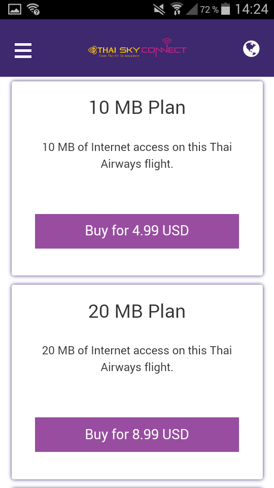 Passagiere der Business Class erhalten einen 5 MB Gutschein mit einer Anleitung, wie man sich ins Netzwerk einloggen kann. Mit diesem Datenvolumen kann man ein paar Nachrichten schreiben oder Mails checken. Reicht euch das nicht aus, stehen vier verschiedene Datenpakete zur Auswahl:
