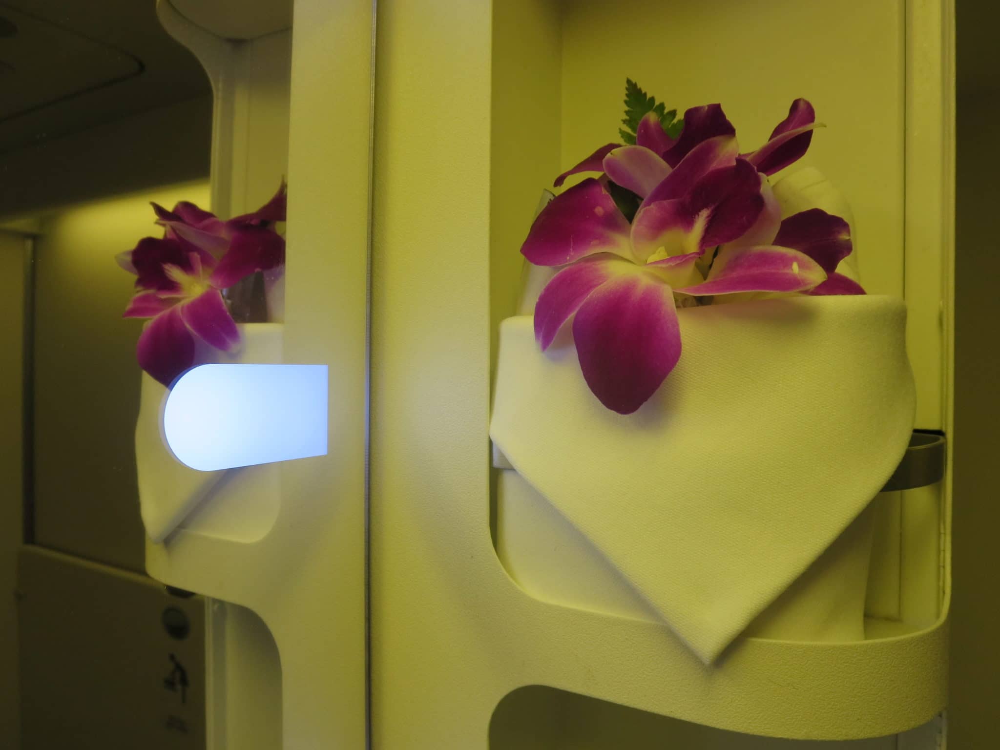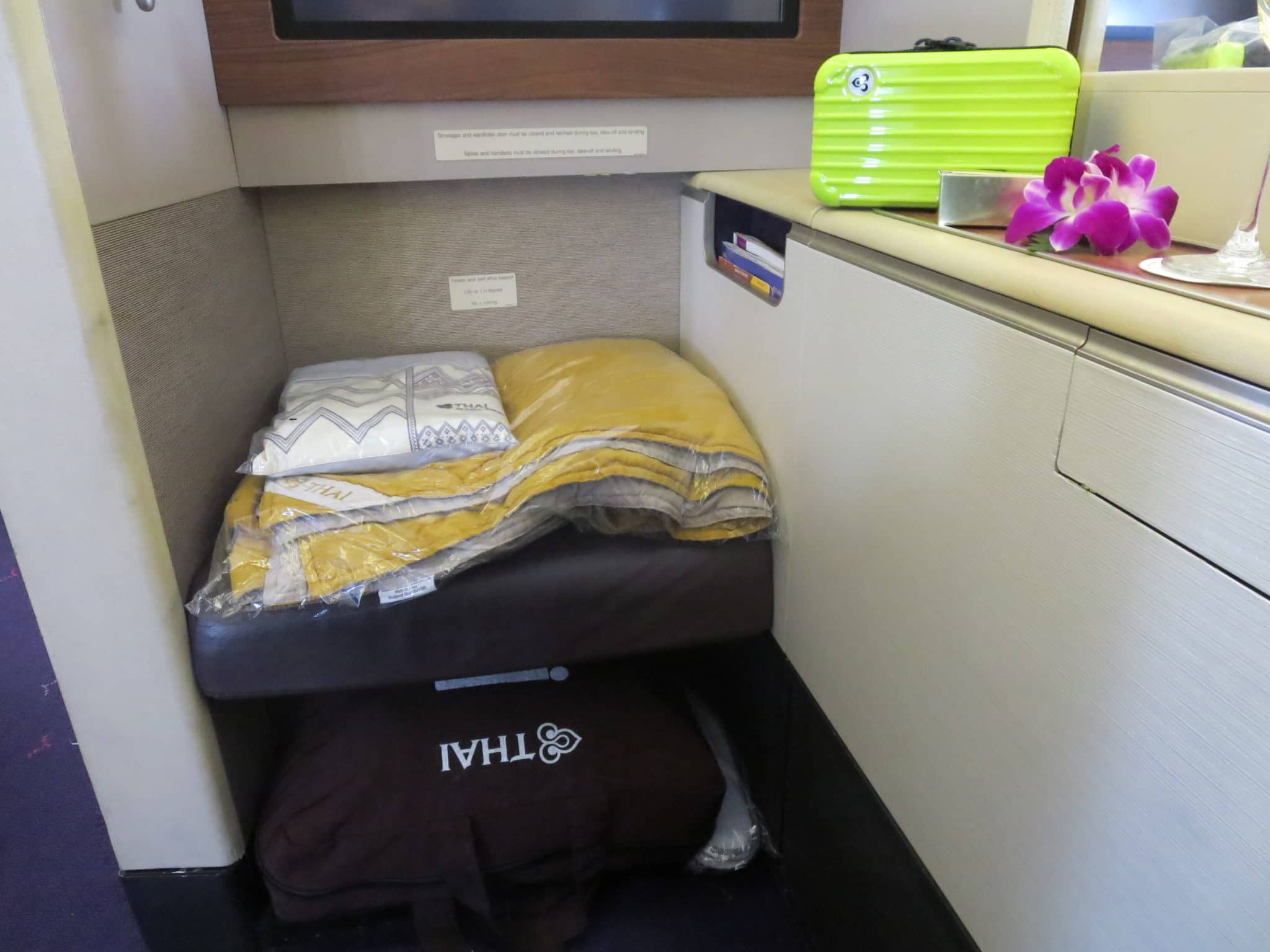 Im Vergleich zur First Class im Thai Airways A380 fehlt aber zum Beispiel ein persönlicher Spint, in dem sich ein Jacket oder Hemd aufhängen lassen. Stattdessen wird dies von der Crew übernommen.