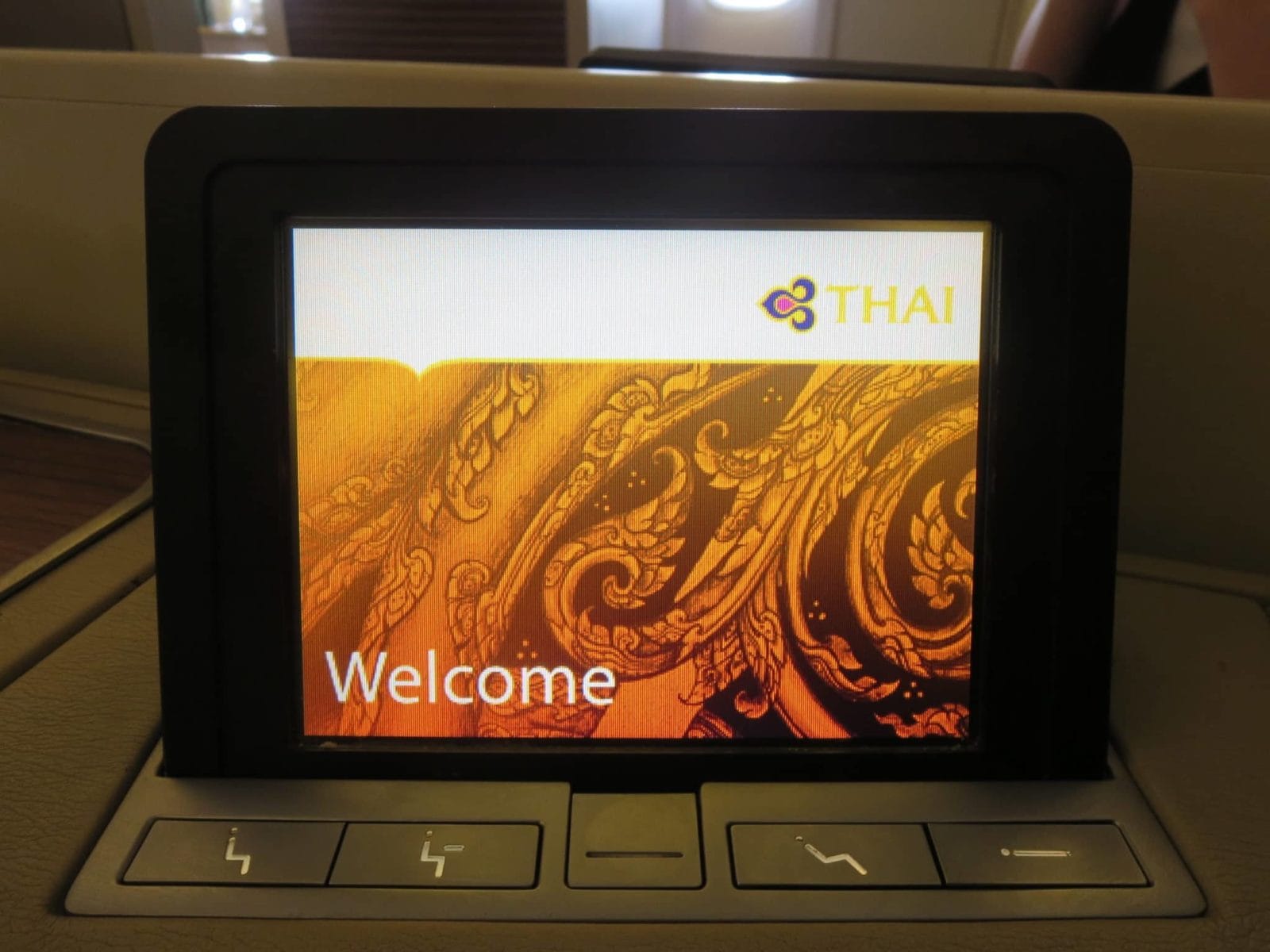 Jede Thai Airways First Class Suite verfügt natürlich über einen eigenen Bildschirm, welcher über eine Bildschirmdiagonale von 58 Zentimetern (23 Zoll) verfügt. Das ist zwar definitiv ausreichend um entspannt einen Film zu gucken, doch mit anderen Airlines kann Thai hier nur bedingt mithalten. So findet sich in der Asiana First Class (Review: Asiana First Class A380 Seoul nach Frankfurt) beispielsweise ein 32 Zoll (81 Zentimeter) Bildschirm. Das Programm war mit etwas über 100 Filmen durchaus ausreichend. Hier ist es ohnehin bei jeder Airline immer etwas Glückssache, ob der richtige Film dabei ist. Die Bedienung erfolgt, wie bereits oben erwähnt über die kleine Fernbedienung in der Seitenkonsole.