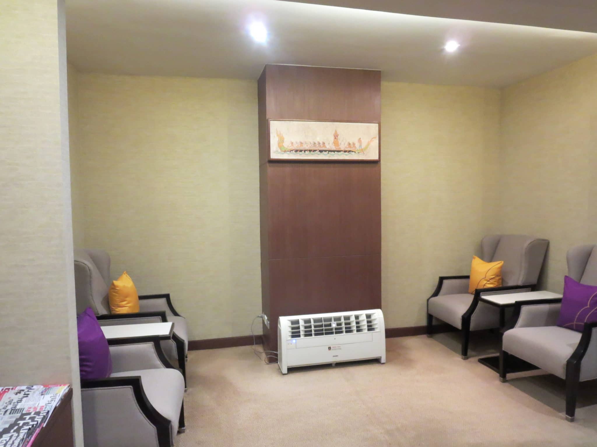 Laut Thai Airways Webseite bietet die Thai Airways First Class Lounge insgesamt 134 Passagieren Platz. Diese verteilen sich nicht nur auf den Hauptloungebereich mit zahlreichen Sesseln und Couches, sondern auch noch auf zwei VIP Räume, sowie 6 “Wohnzimmer”. Während unseres Aufenthalts waren aber kaum mehr als 20 Gäste anzutreffen, sodass die Lounge zu keinem Zeitpunkt auch nur ansatzweise voll wirkte.