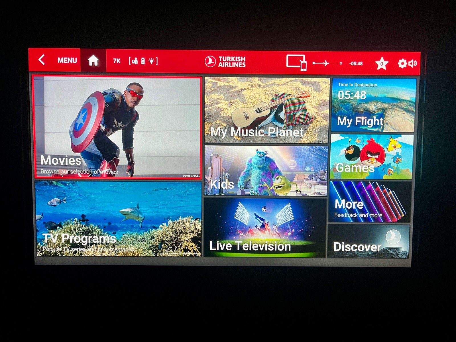 Neben den klassischen Inhalten bietet Turkish Airlines eine anschauliche Flight Show (Voyager 3D von Panasonic). Dank dreier Außenkameras im Airbus A350 lässt sich außerdem das Geschehen draußen verfolgen – besonders beim Start ein echtes Highlight.