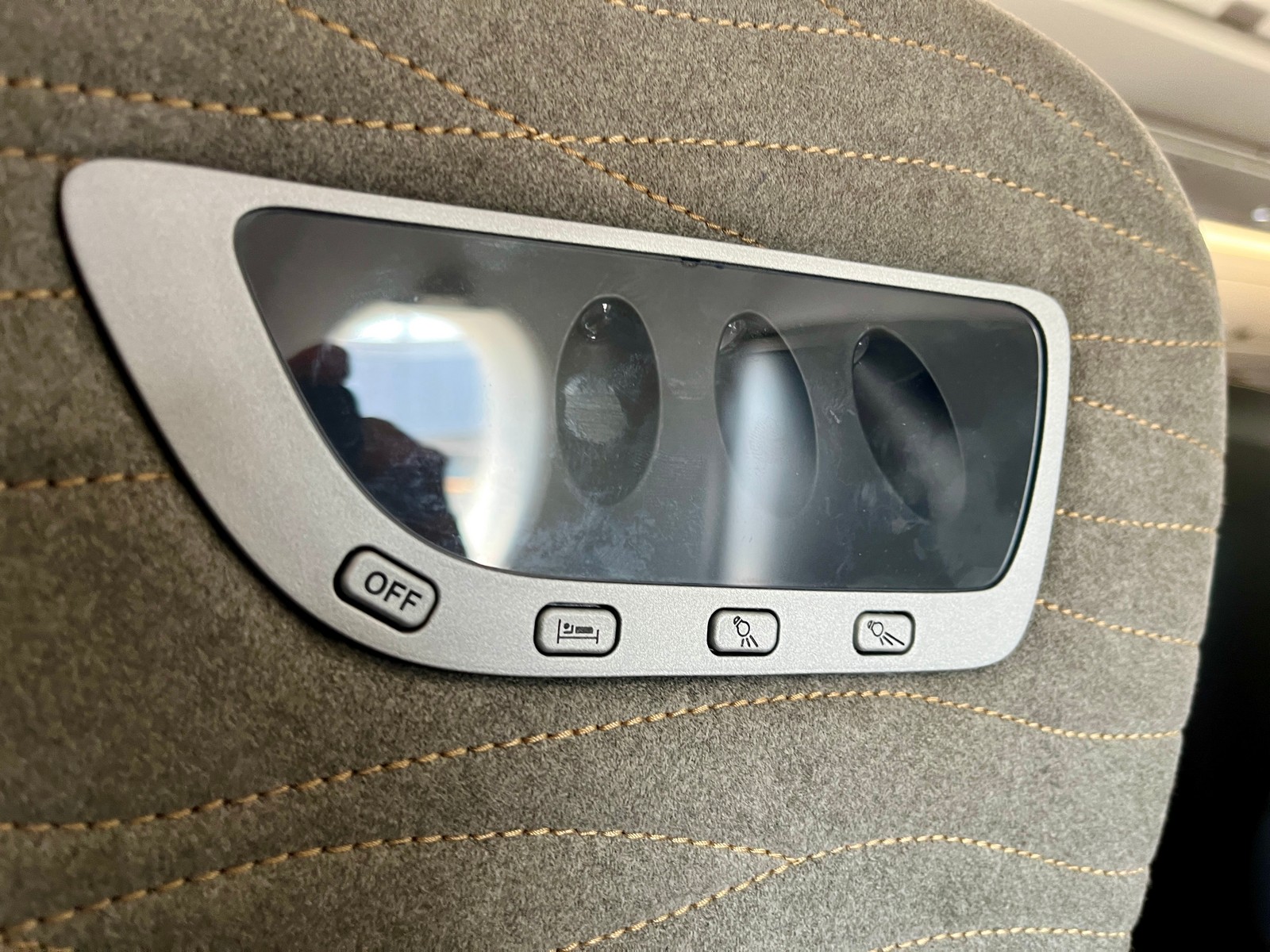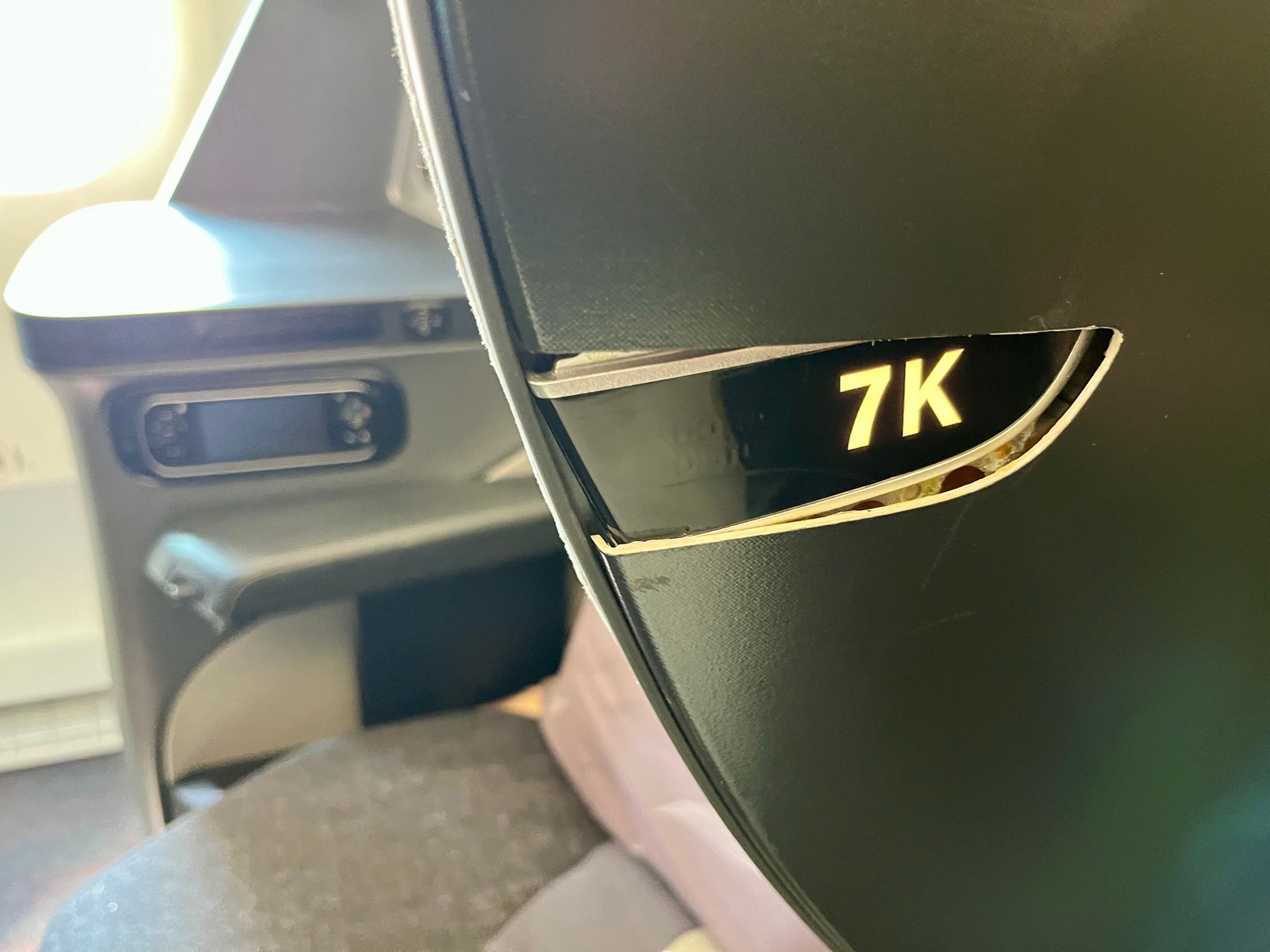 Der Sitz selbst ist sehr bequem und lässt sich stufenlos in eine Lounge- oder Liegeposition bringen. Ich empfand die Sitzverschalung zum Gang hin jedoch als leicht einengend im Schulterbereich. Der Fußraum ist nicht besonders groß, sollte für Personen durchschnittlicher Größe jedoch ausreichend sein.