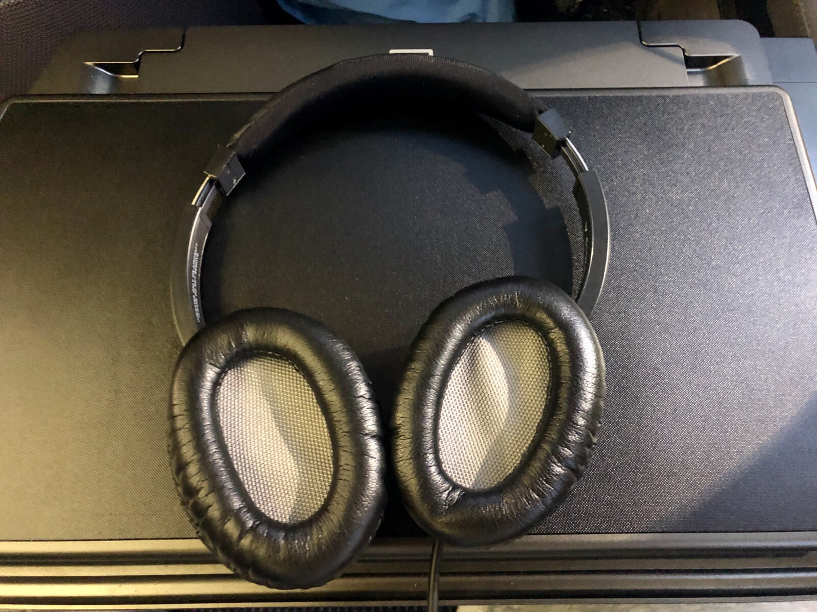 Bei den Kopfhörern handelt es sich um Noise Cancelling Over-Ear Kopfhörer. Die Kopfhörer lagen angenehm auf dem Ohr und ich hatte zu keiner Zeit das Gefühl, dass ich sie jetzt abnehmen müsste, weil sie wehtun. Over-Ear Kopfhörer sind für mich eigentlich Pflicht in der Business Class, daher verstehe ich nicht, warum manche Airlines ihren Gästen immer noch On-Ear Kopfhörer anbieten.