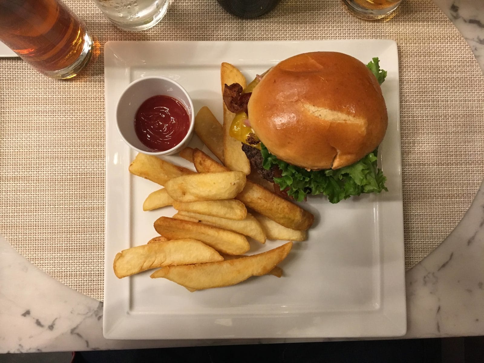 Im Anschluss daran bestellten wir uns alle den United Polaris Burger. Vermutlich lag es vor allem an der Kombination sensationelle Lounge + Ende der Ferien + Bier, aber der Burger und die Pommes waren fantastisch!